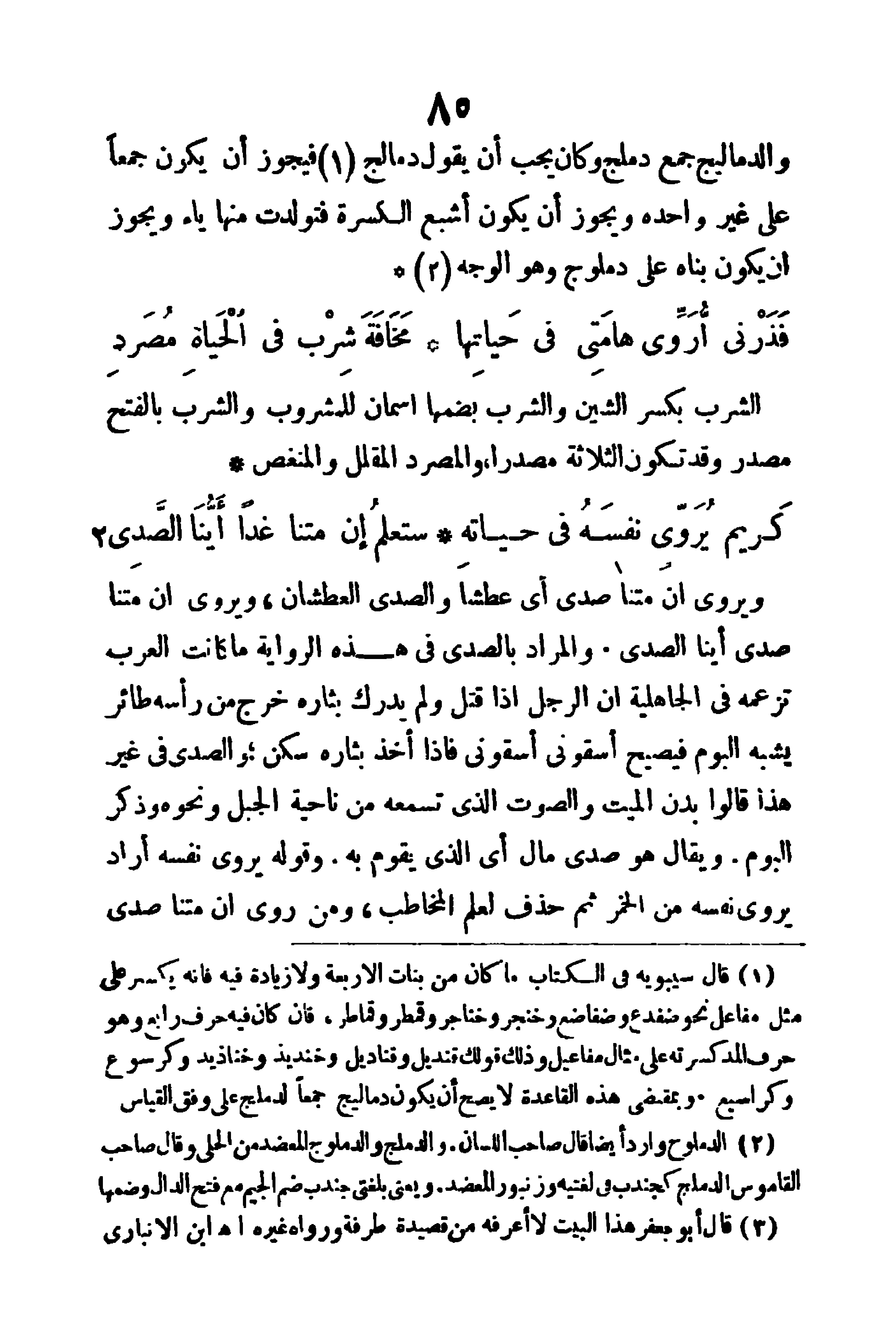 (اسقوني، اسقوني) فإذا أخذ بثأره سكن، والصدى في غير هذا قالوا: بدن الميت، والصوت الذي تسمعه من ناحية الجبل ونحوه، وذكرُ البوم، ويقال: (هو صدى مال) أي الذي يقوم به، وقوله: (يروى نفسه) أراد يروى نفسه من الخمر، ثم حذف لعلم المخاطب، ومن روى (إن متنا صدى)