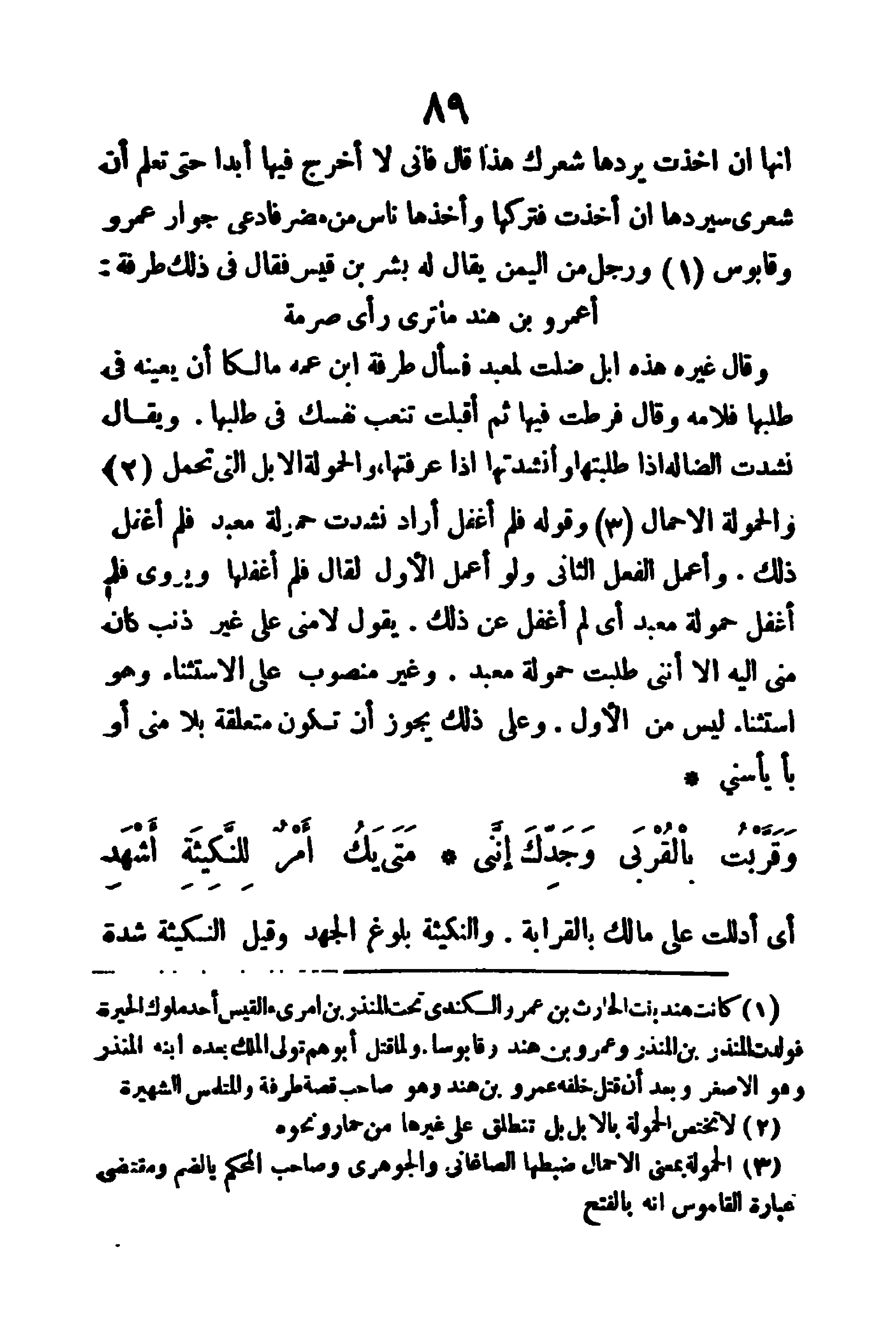 (وَقَرَّبْتُ بِالقُرْبَى، وَجَدِّكَ إِنَّنِي ... مَتَى يَكُ أَمْرٌ للِنَّكِيِثَةِ أَشْهَدِ)