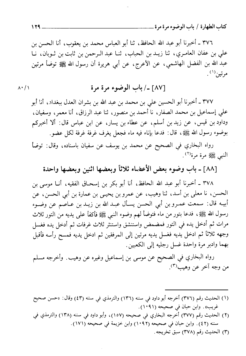 376 - أَخْبَرَنَا أَبُو عَبْدِ اللهِ الْحَافِظُ، ثنا أَبُو الْعَبَّاسِ مُحَمَّدُ بْنُ يَعْقُوبَ، أنا الْحَسَنُ بْنُ عَلِيِّ بْنِ عَفَّانَ الْعَامِرِيُّ، ثنا زَيْدُ بْنُ الْحُبَابِ، ثنا عَبْدُ الرَّحْمَنِ بْنُ ثَابِتِ بْنِ ثَوْبَانَ، نا عَبْدُ اللهِ بْنُ الْفَضْلِ الْهَاشِمٍيُّ، عَنِ الْأَعْرَجِ، عَنْ أَبِي هُرَيْرَةَ " أَنَّ رَسُولَ اللهِ صَلَّى اللهُ عَلَيْهِ وَسَلَّمَ §تَوَضَّأَ مَرَّتَيْنِ مَرَّتَيْنِ "