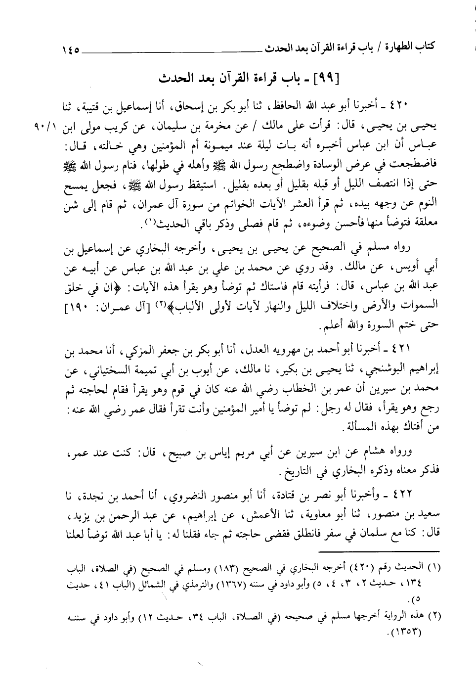§بَابُ قِرَاءَةِ الْقُرْآنِ بَعْدَ الْحَدَثِ
