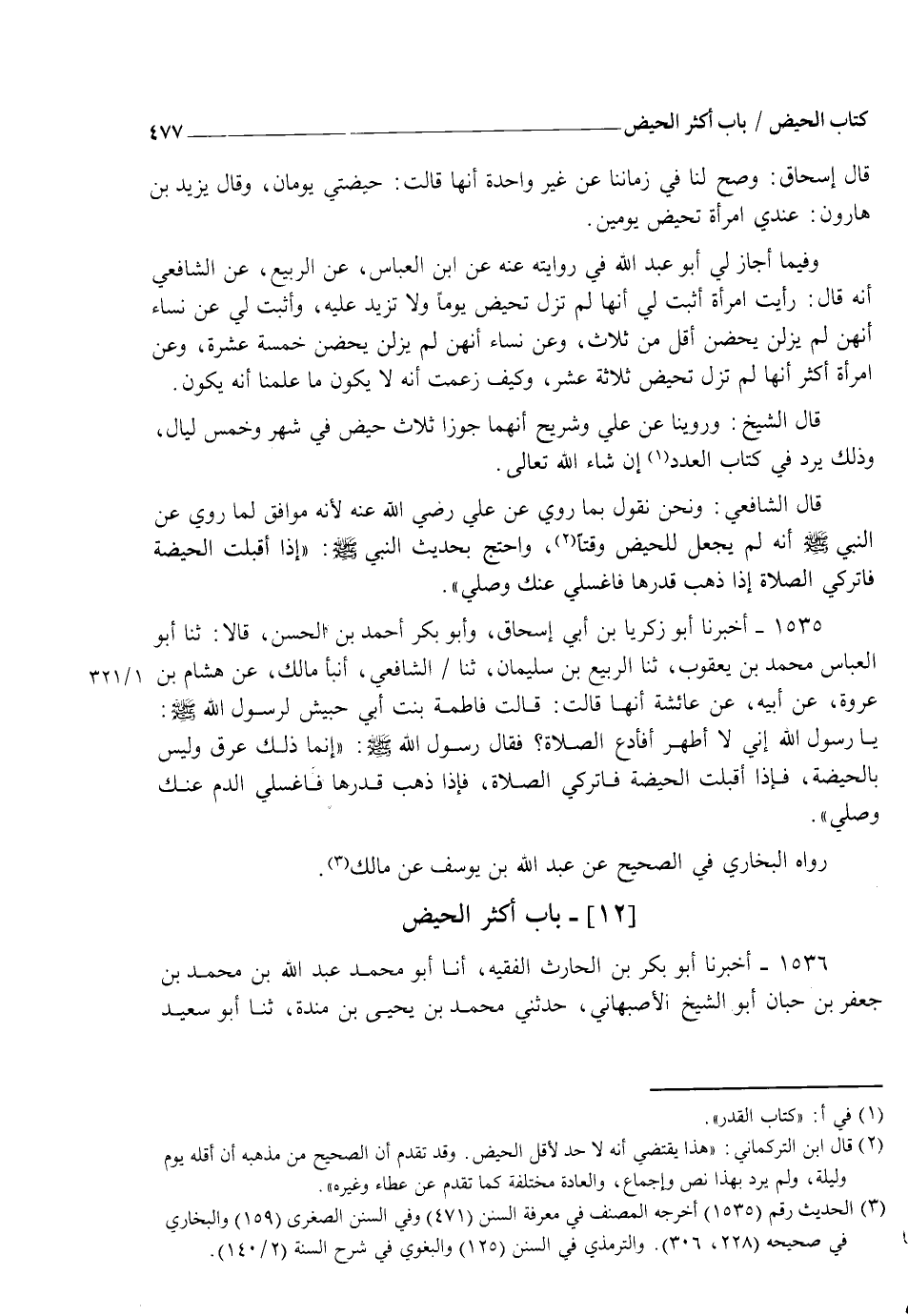 1535 - أَخْبَرَنَا أَبُو زَكَرِيَّا بْنُ أَبِي إِسْحَاقَ، وَأَبُو بَكْرٍ أَحْمَدُ بْنُ الْحَسَنِ قَالَا: ثنا أَبُو الْعَبَّاسِ مُحَمَّدُ بْنُ يَعْقُوبَ، ثنا الرَّبِيعُ بْنُ سُلَيْمَانَ ثنا الشَّافِعِيُّ، أنبأ مَالِكٌ، عَنْ هِشَامِ بْنِ عُرْوَةَ، عَنْ أَبِيهِ، عَنْ عَائِشَةَ، أَنَّهَا قَالَتْ: قَالَتْ فَاطِمَةُ بِنْتُ أَبِي حُبَيْشٍ لِرَسُولِ اللهِ صَلَّى اللهُ عَلَيْهِ وَسَلَّمَ: يَا رَسُولَ اللهِ إِنِّي لَا أَطْهُرُ أَفَأَدَعُ الصَّلَاةَ؟ فَقَالَ رَسُولُ اللهِ صَلَّى اللهُ عَلَيْهِ وَسَلَّمَ: " §إِنَّمَا ذَلِكَ عِرْقٌ وَلَيْسَ بِالْحَيْضَةِ فَإِذَا أَقْبَلَتِ الْحَيْضَةُ فَاتْرُكِي الصَّلَاةَ فَإِذَا ذَهَبَ قَدْرُهَا فَاغْسِلِي الدَّمَ عَنْكِ وَصَلِّي" رَوَاهُ الْبُخَارِيُّ فِي الصَّحِيحِ عَنْ عَبْدِ اللهِ بْنِ يُوسُفَ عَنْ مَالِكٍ