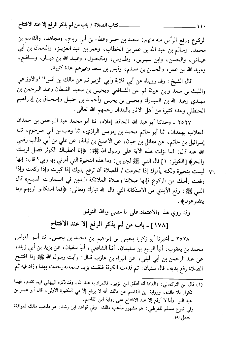 2528 - أَخْبَرَنَا أَبُو زَكَرِيَّا يَحْيَى بْنُ إِبْرَاهِيمَ بْنِ مُحَمَّدِ بْنِ يَحْيَى، ثنا أَبُو الْعَبَّاسِ مُحَمَّدُ بْنُ يَعْقُوبَ، أنبأ الرَّبِيعُ بْنُ سُلَيْمَانَ، أنبأ الشَّافِعِيُّ، أنبأ سُفْيَانُ، عَنْ يَزِيدَ بْنِ أَبِي زِيَادٍ، عَنْ عَبْدِ الرَّحْمَنِ بْنِ أَبِي لَيْلَى، عَنِ الْبَرَاءِ بْنِ عَازِبٍ قَالَ: رَأَيْتُ رَسُولَ اللهِ صَلَّى اللهُ عَلَيْهِ وَسَلَّمَ " §إِذَا افْتَتَحَ الصَّلَاةَ رَفَعَ يَدَيْهِ " قَالَ سُفْيَانُ: ثُمَّ قَدِمْتُ الْكُوفَةَ فَلَقِيتُ يَزِيدَ فَسَمِعْتُهُ يُحَدِّثُ بِهَذَا، وَزَادَ فِيهِ: ثُمَّ -[111]- لَا يَعُودُ فَظَنَنْتُ أَنَّهُمْ لَقَّنُوهُ قَالَ سُفْيَانُ: هَكَذَا سَمِعْتُ يَزِيدَ يُحَدِّثُهُ، ثُمَّ سَمِعْتُهُ بَعْدُ يُحَدِّثُهُ هَكَذَا وَيَزِيدُ فِيهِ: ثُمَّ لَا يَعُودُ قَالَ الشَّافِعِيُّ رَحِمَهُ اللهُ: وَذَهَبَ سُفْيَانُ إِلَى أَنْ يُغَلِّطَ يَزِيدَ فِي هَذَا الْحَدِيثِ يَقُولُ: كَأَنَّهُ لُقِّنَ هَذَا الْحَرْفَ فَتَلَقَّنَهُ وَلَمْ يَكُنْ يَذْكُرُ سُفْيَانُ يَزِيدَ بِالْحِفْظِ كَذَلِكَ أَخْبَرَنَا أَبُو سَعِيدٍ يَحْيَى بْنُ مُحَمَّدِ بْنِ يَحْيَى الْإِسْفِرَايِينِيُّ، أنبأ أَبُو بَحْرٍ مُحَمَّدُ بْنُ الْحَسَنِ الْبَرْبَهَارِيُّ، ثنا بِشْرُ بْنُ مُوسَى، ثنا الْحُمَيْدِيُّ، ثنا سُفْيَانُ، ثنا يَزِيدُ بْنُ أَبِي زِيَادٍ، بِمَكَّةَ فَذَكَرَ هَذَا الْحَدِيثَ لَيْسَ فِيهِ: ثُمَّ لَا يَعُودُ وَقَالَ سُفْيَانُ: فَلَمَّا قَدِمْتُ الْكُوفَةَ سَمِعْتُهُ يُحَدِّثُ بِهِ فَيَقُولُ فِيهِ: ثُمَّ لَا يَعُودُ، فَظَنَنْتُ أَنَّهُمْ لَقَّنُوهُ، وَقَالَ لِي أَصْحَابُنَا: إِنَّ حِفْظَهُ قَدْ تَغَيَّرَ، أَوْ قَالُوا: قَدْ سَاءَ قَالَ الْحُمَيْدِيُّ: قُلْنَا لِقَائِلٍ: هَذَا يَعْنِي لِلْمُحْتَجِّ بِهَذَا، إِنَّمَا رَوَاهُ يَزِيدُ، وَيَزِيدُ يَزِيدُ