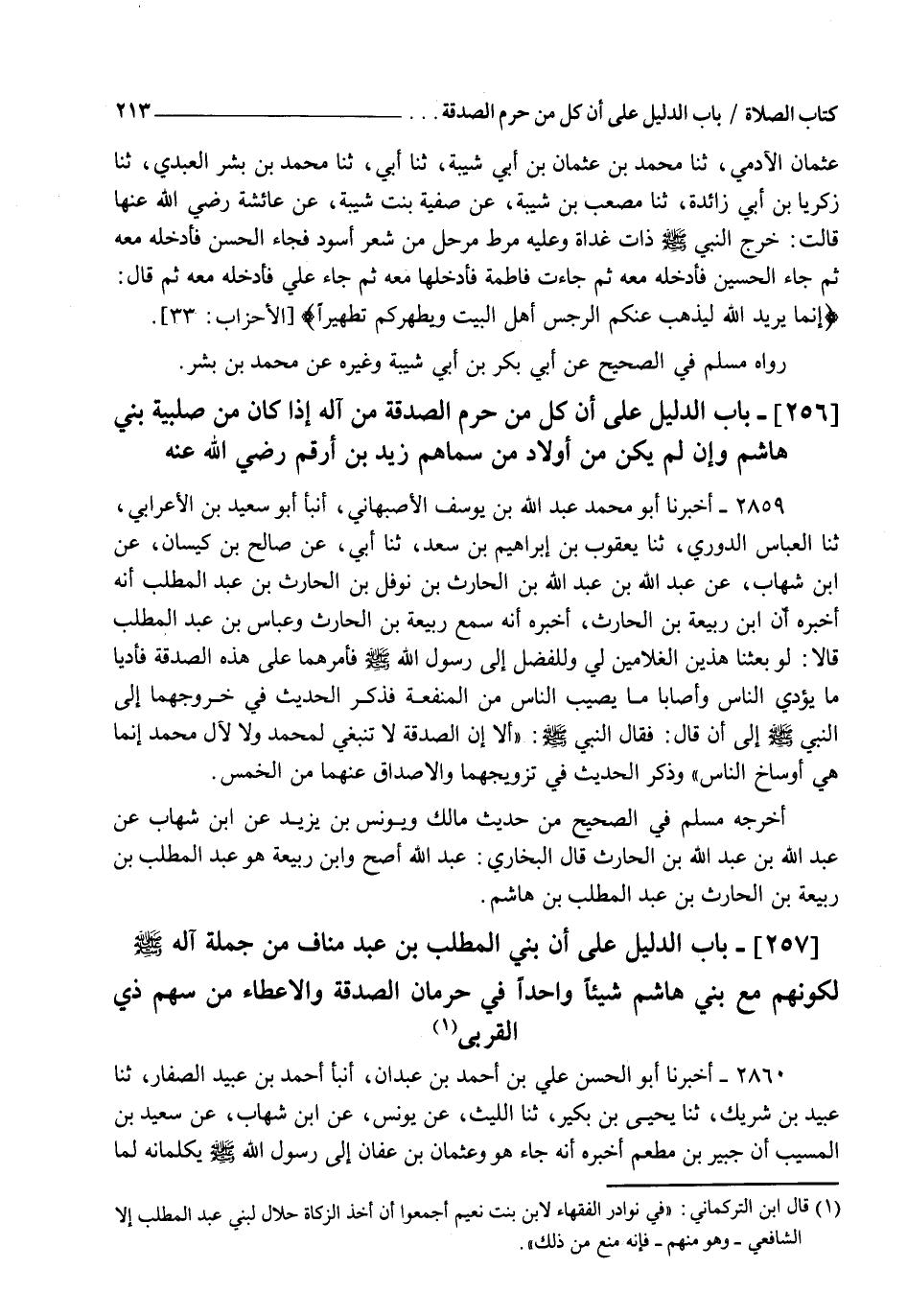 §بَابُ الدَّلِيلِ عَلَى أَنَّ كُلَّ مَنْ حُرِمَ الصَّدَقَةَ مِنْ آلِهِ إِذَا كَانَ مِنْ صُلْبِيَّةِ بَنِي هَاشِمٍ، وَإِنْ لَمْ يَكُنْ مِنْ أَوْلَادِ مَنْ سَمَّاهُمْ زَيْدُ بْنُ أَرْقَمَ رَضِيَ اللهُ عَنْهُ