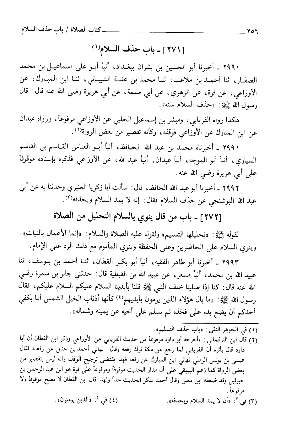 2990 - أَخْبَرَنَا أَبُو الْحُسَيْنِ بْنُ بِشْرَانَ بِبَغْدَادَ أنبأ أَبُو عَلِيٍّ إِسْمَاعِيلُ بْنُ مُحَمَّدٍ الصَّفَّارُ، ثنا أَحْمَدُ بْنُ مُلَاعِبٍ، ثنا مُحَمَّدُ بْنُ عُقْبَةَ الشَّيْبَانِيُّ، ثنا ابْنُ الْمُبَارَكِ، عَنِ الْأَوْزَاعِيِّ، عَنْ قُرَّةَ، عَنِ الزُّهْرِيِّ، عَنْ أَبِي سَلَمَةَ، عَنْ أَبِي هُرَيْرَةَ رَضِيَ اللهُ عَنْهُ قَالَ: قَالَ رَسُولُ اللهِ صَلَّى اللهُ عَلَيْهِ وَسَلَّمَ: " §حَذْفُ السَّلَامِ سُنَّةٌ " هَكَذَا رَوَاهُ الْفِرْيَابِيُّ، وَمُبَشِّرُ بْنُ إِسْمَاعِيلَ الْحَلَبِيُّ، عَنِ الْأَوْزَاعِيِّ مَرْفُوعًا وَرَوَاهُ عَبْدَانُ، عَنِ ابْنِ الْمُبَارَكِ، عَنِ الْأَوْزَاعِيِّ فَوَقَفَهُ وَكَأَنَّهُ تَقْصِيرٌ مِنْ بَعْضِ الرُّوَاةِ