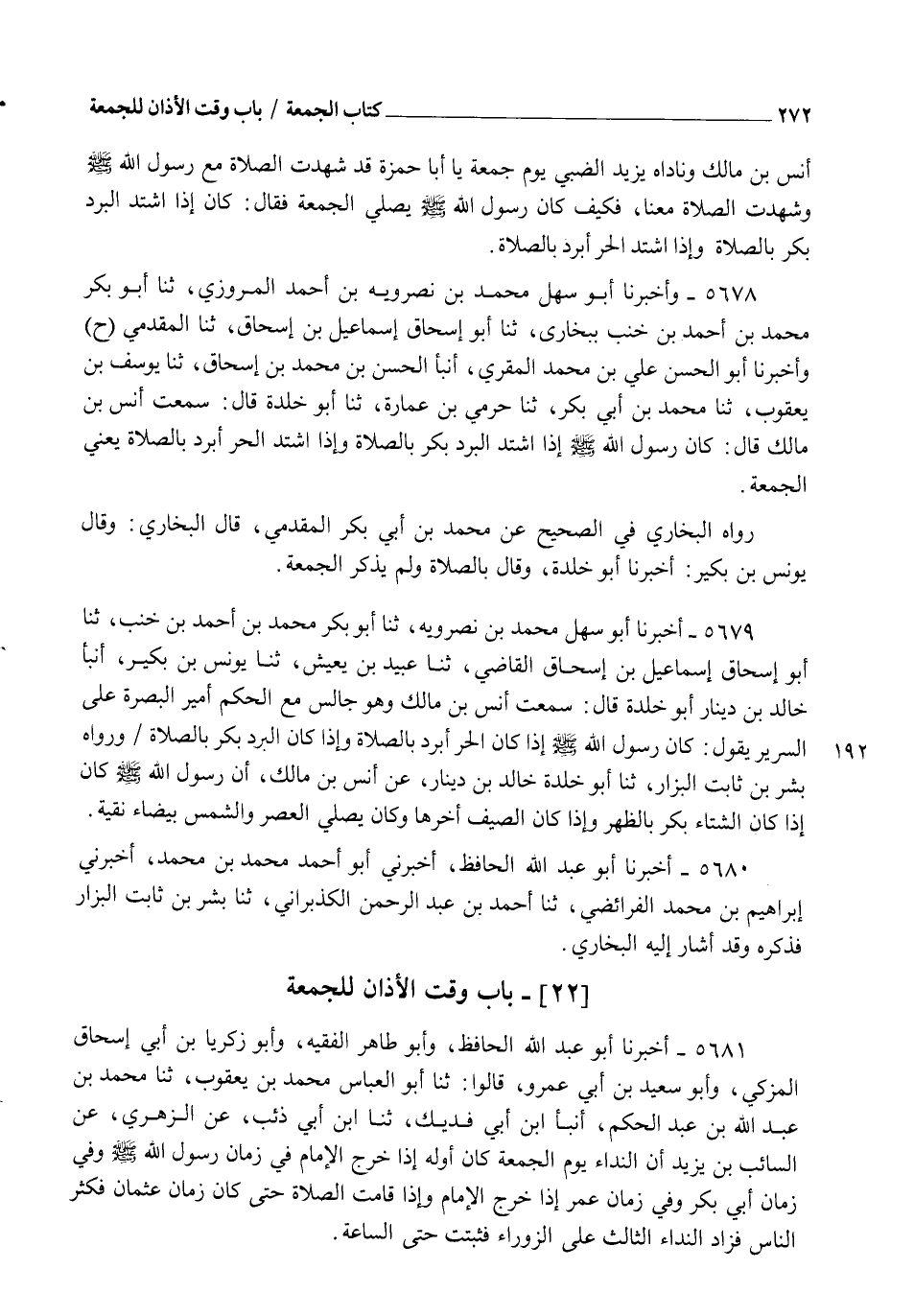 5680 - أَخْبَرَنَا أَبُو عَبْدِ اللهِ الْحَافِظُ، أَخْبَرَنِي أَبُو أَحْمَدَ مُحَمَّدُ بْنُ مُحَمَّدٍ أَخْبَرَنِي إِبْرَاهِيمُ بْنُ مُحَمَّدٍ الْفَرَائِضِيُّ، ثنا أَحْمَدُ بْنُ عَبْدِ الرَّحْمَنِ الْكُذْبَرَانِيُّ، ثنا بِشْرُ بْنُ ثَابِتٍ الْبَزَّارُ، فَذَكَرَهُ. وَقَدْ أَشَارَ إِلَيْهِ الْبُخَارِيُّ