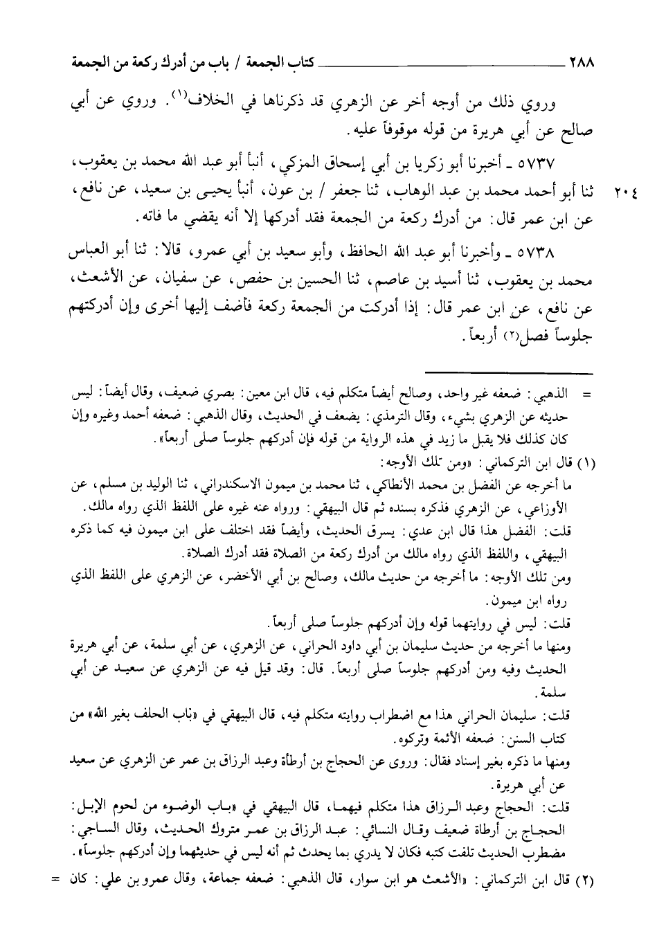 5737 - أَخْبَرَنَا أَبُو زَكَرِيَّا بْنُ أَبِي إِسْحَاقَ الْمُزَكِّي، أنبأ أَبُو عَبْدِ اللهِ مُحَمَّدُ بْنُ يَعْقُوبَ ثنا أَبُو أَحْمَدَ مُحَمَّدُ بْنُ عَبْدِ الْوَهَّابِ، ثنا جَعْفَرُ بْنُ عَوْنٍ، أنبأ يَحْيَى بْنُ سَعِيدٍ، عَنْ نَافِعٍ، عَنِ ابْنِ عُمَرَ قَالَ: " §مَنْ أَدْرَكَ رَكْعَةً مِنَ الْجُمُعَةِ فَقَدْ أَدْرَكَهَا، إِلَّا أَنَّهُ يَقْضِي مَا فَاتَهُ "