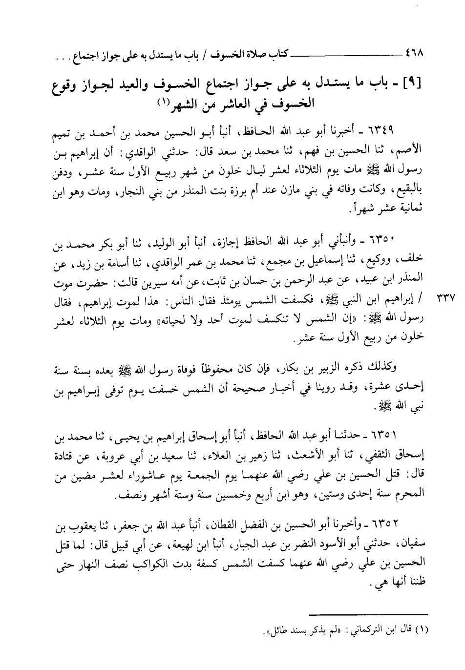 §بَابُ مَا يُسْتَدَلُّ بِهِ عَلَى جَوَازِ اجْتِمَاعِ الْخُسُوفِ وَالْعِيدِ لِجَوَازِ وُقُوعِ الْخُسُوفِ فِي الْعَاشِرِ مِنَ الشَّهْرِ