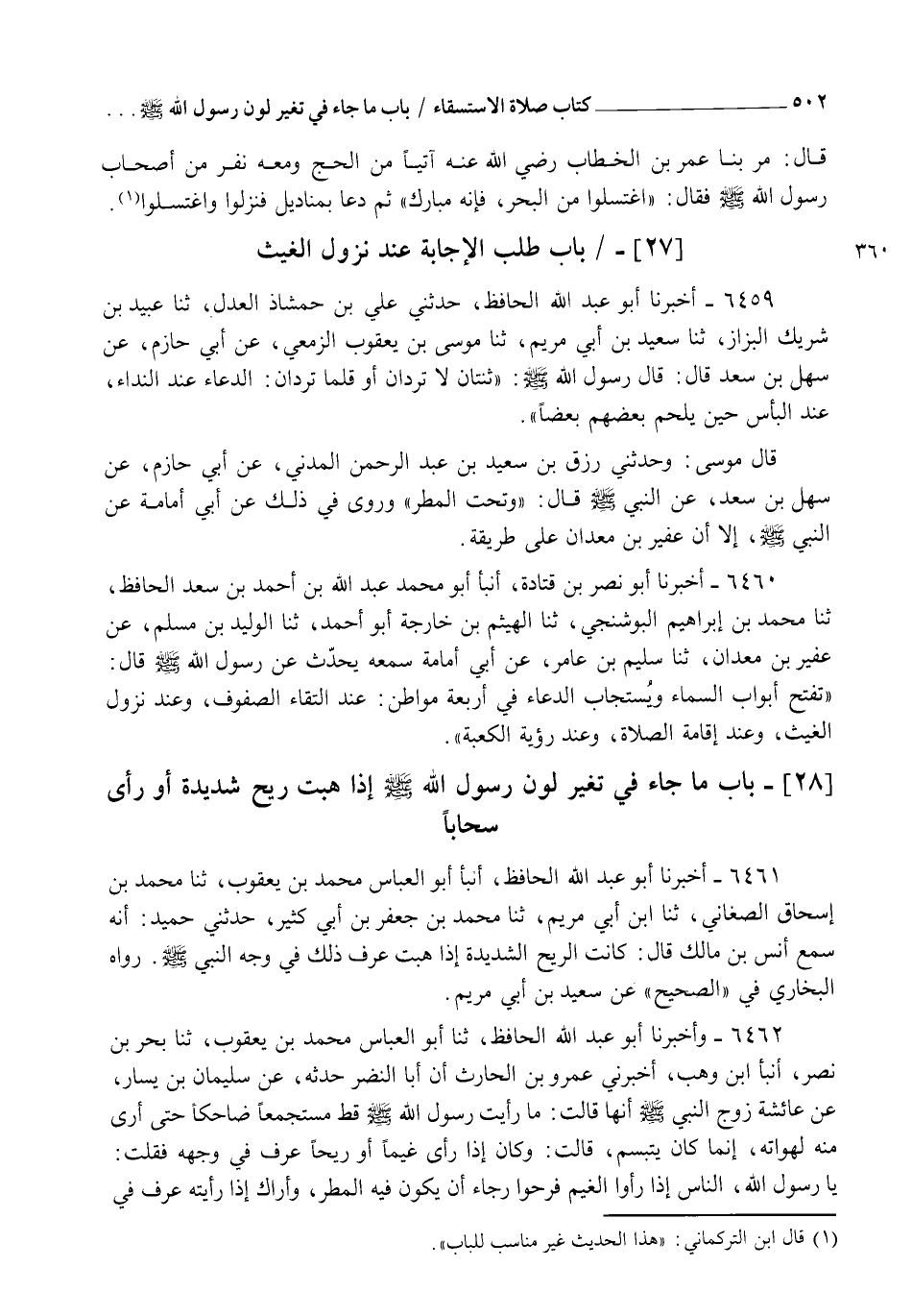 6461 - أَخْبَرَنَا أَبُو عَبْدِ اللهِ الْحَافِظُ، أنبأ أَبُو الْعَبَّاسِ مُحَمَّدُ بْنُ يَعْقُوبَ، ثنا مُحَمَّدُ بْنُ إِسْحَاقَ الصَّغَانِيُّ، ثنا ابْنُ أَبِي مَرْيَمَ، ثنا مُحَمَّدُ بْنُ جَعْفَرِ بْنِ أَبِي كَثِيرٍ، حَدَّثَنِي حُمَيْدٌ أَنَّهُ سَمِعَ أَنَسَ بْنَ مَالِكٍ قَالَ: §" كَانَتِ الرِّيحُ الشَّدِيدَةُ إِذَا هَبَّتْ عُرِفَ ذَلِكَ فِي وَجْهِ النَّبِيِّ صَلَّى اللهُ عَلَيْهِ وَسَلَّمَ " رَوَاهُ الْبُخَارِيُّ فِي الصَّحِيحِ عَنْ سَعِيدِ بْنِ أَبِي مَرْيَمَ