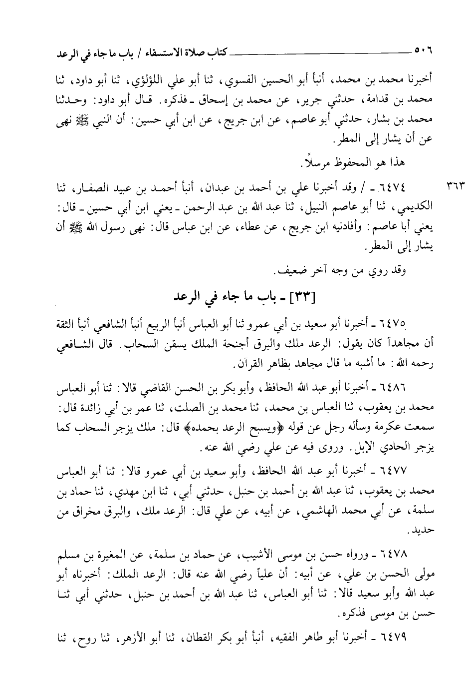 6478 - وَرَوَاهُ حَسَنُ بْنُ مُوسَى الْأَشْيَبُ، عَنْ حَمَّادِ بْنِ سَلَمَةَ، عَنِ الْمُغِيرَةِ بْنِ مُسْلِمٍ مَوْلَى الْحَسَنِ بْنِ عَلِيٍّ، عَنْ أَبِيهِ، أَنَّ عَلِيًّا رَضِيَ اللهُ عَنْهُ قَالَ " الرَّعْدُ الْمَلَكُ ". أَخْبَرَنَاهُ أَبُو عَبْدِ اللهِ، وَأَبُو سَعِيدٍ قَالَا: ثنا أَبُو الْعَبَّاسِ، ثنا عَبْدُ اللهِ بْنُ أَحْمَدَ بْنِ حَنْبَلٍ، حَدَّثَنِي أَبِي، ثنا حَسَنُ بْنُ مُوسَى، فَذَكَرَهُ
