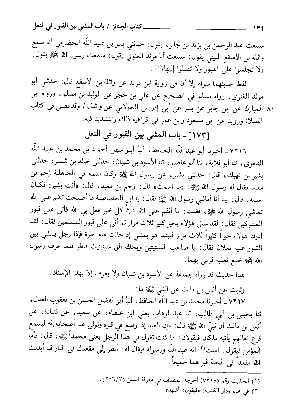 §بَابُ الْمَشْيِ بَيْنَ الْقُبُورِ فِي النَّعْلِ