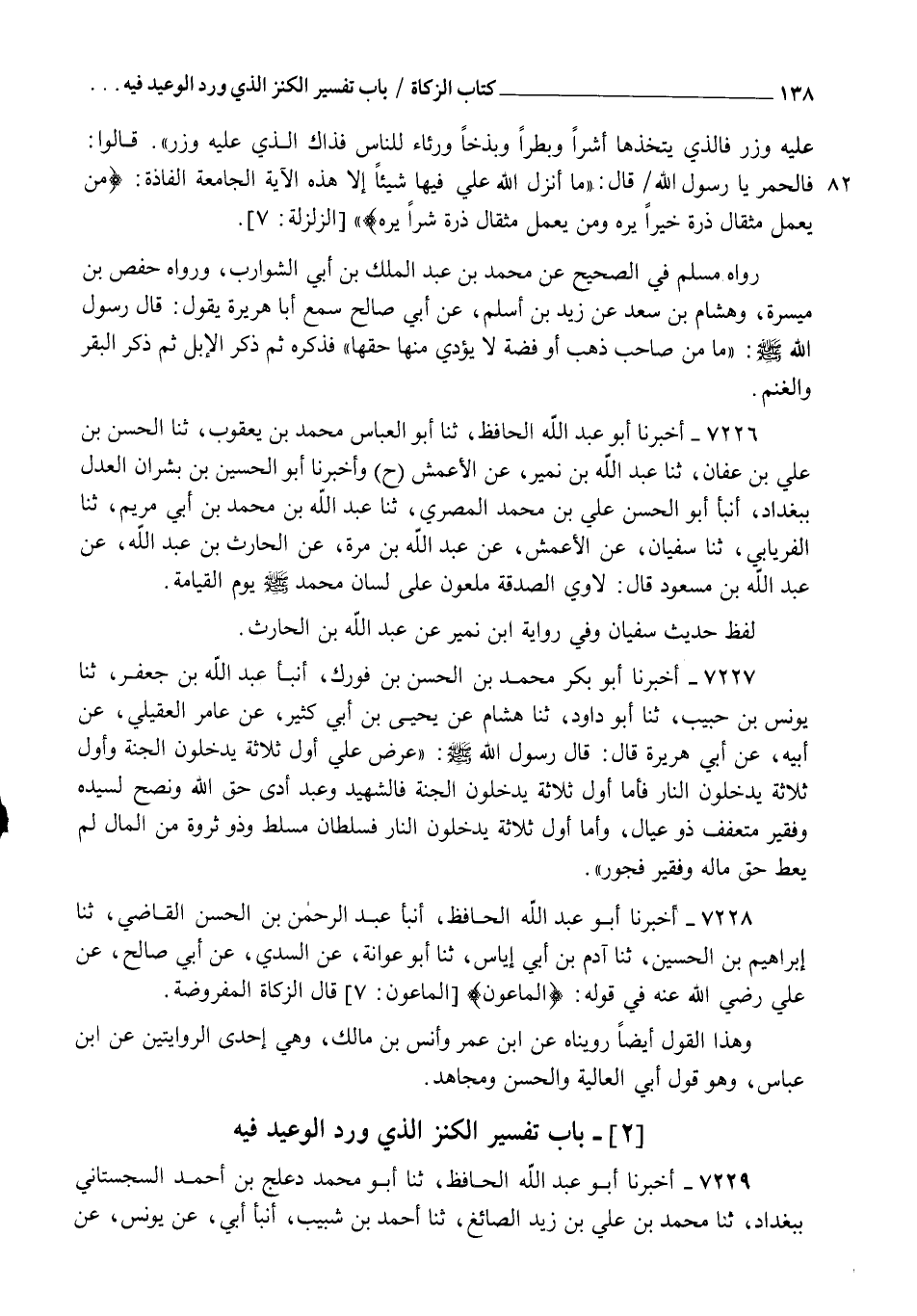 7226 - أَخْبَرَنَا أَبُو عَبْدِ اللهِ الْحَافِظُ، ثنا أَبُو الْعَبَّاسِ مُحَمَّدُ بْنُ يَعْقُوبَ , ثنا الْحَسَنُ بْنُ عَلِيِّ بْنِ عَفَّانَ، ثنا عَبْدُ اللهِ بْنُ نُمَيْرٍ، عَنِ الْأَعْمَشِ، ح وَأَخْبَرَنَا أَبُو الْحُسَيْنِ بْنُ بِشْرَانَ الْعَدْلُ بِبَغْدَادَ، أنبأ أَبُو الْحَسَنِ عَلِيُّ بْنُ مُحَمَّدٍ الْمِصْرِيُّ , ثنا عَبْدُ اللهِ بْنُ مُحَمَّدِ بْنِ أَبِي مَرْيَمَ، ثنا الْفِرْيَابِيُّ، ثنا سُفْيَانُ، عَنِ الْأَعْمَشِ، عَنْ عَبْدِ اللهِ بْنِ مُرَّةَ، عَنِ الْحَارِثِ بْنِ عَبْدِ اللهِ، عَنِ عَبْدِ اللهِ بْنِ مَسْعُودٍ، قَالَ: §" لَاوِي الصَّدَقَةِ مَلْعُونٌ عَلَى لِسَانِ مُحَمَّدٍ صَلَّى اللهُ عَلَيْهِ وَسَلَّمَ يَوْمَ الْقِيَامَةِ " لَفْظُ حَدِيثِ سُفْيَانَ وَفِي رِوَايَةِ ابْنِ نُمَيْرٍ عَنْ عَبْدِ اللهِ بْنِ الْحَارِثِ