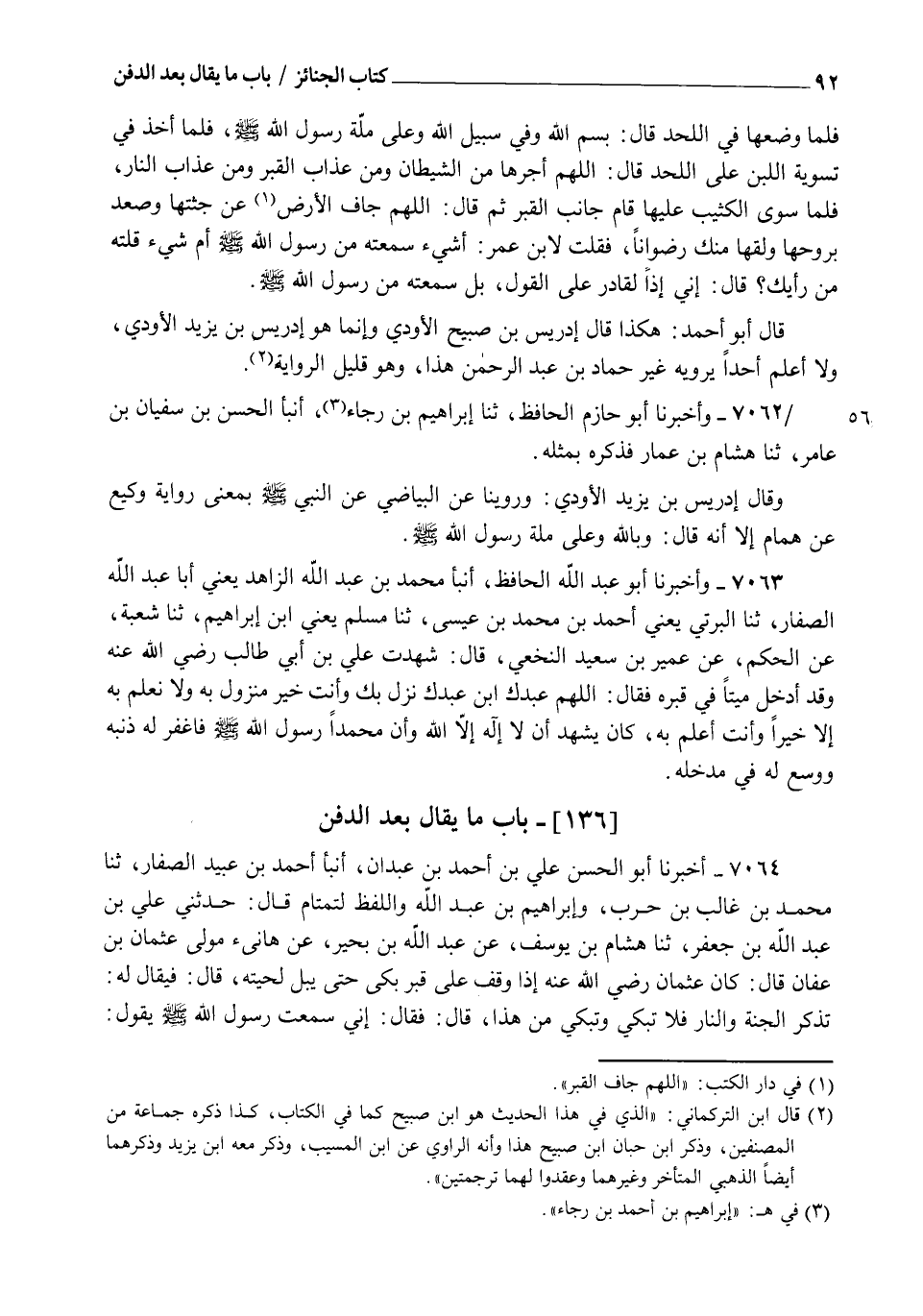 7063 - وَأَخْبَرَنَا أَبُو عَبْدِ اللهِ الْحَافِظُ، أنبأ مُحَمَّدُ بْنُ عَبْدِ اللهِ الزَّاهِدُ يَعْنِي أَبَا عَبْدِ اللهِ الصَّفَّارُ، ثنا الْبِرْتِيُّ يَعْنِي أَحْمَدَ بْنَ مُحَمَّدِ بْنِ عِيسَى، ثنا مُسْلِمٌ يَعْنِي ابْنَ إِبْرَاهِيمَ، ثنا شُعْبَةُ، عَنِ الْحَكَمِ، عَنْ عُمَيْرِ بْنِ سَعِيدٍ النَّخَعِيِّ، قَالَ: شَهِدْتُ عَلِيَّ بْنَ أَبِي طَالِبٍ رَضِيَ اللهُ عَنْهُ وَقَدْ أَدْخَلَ مَيِّتًا فِي قَبْرِهِ فَقَالَ: §" اللهُمَّ عَبْدُكَ , ابْنُ عَبْدِكَ نَزَلَ بِكَ وَأَنْتَ خَيْرُ مَنْزُولٍ بِهِ وَلَا نَعْلَمُ بِهِ إِلَّا خَيْرًا وَأَنْتَ أَعْلَمُ بِهِ , كَانَ يَشْهَدُ أَنْ لَا إِلَهَ إِلَّا اللهُ وَأَنَّ مُحَمَّدًا رَسُولُ اللهِ صَلَّى اللهُ عَلَيْهِ وَسَلَّمَ فَاغْفِرْ لَهُ ذَنْبَهَ وَوَسِّعْ لَهُ فِي مُدْخَلِهِ "