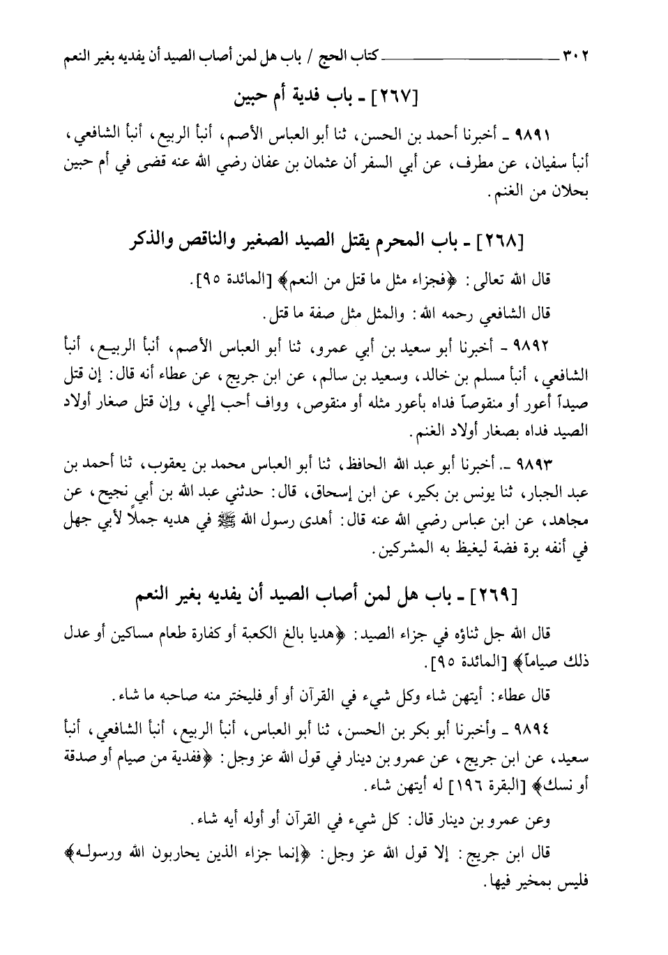 9892 - أَخْبَرَنَا أَبُو سَعِيدِ بْنُ أَبِي عَمْرٍو , ثنا أَبُو الْعَبَّاسِ الْأَصَمُّ , أنبأ الرَّبِيعُ , أنبأ الشَّافِعِيُّ , أنبأ مُسْلِمُ بْنُ خَالِدٍ , وَسَعِيدُ بْنُ سَالِمٍ , عَنِ ابْنِ جُرَيْجٍ , عَنْ عَطَاءٍ أَنَّهُ قَالَ: §" إِنْ قَتَلَ صَيْدًا أَعْوَرَ أَوْ مَنْقُوصًا فَدَاهُ بِأَعْوَرَ مِثْلِهِ , أَوْ مَنْقُوصٍ , وَوَافٍ أَحَبُّ إِلِيَّ , وَإِنْ قَتَلَ صِغَارَ أَوْلَادِ الصَّيْدِ فَدَاهُ بِصِغَارِ أَوْلَادِ الْغَنَمِ "