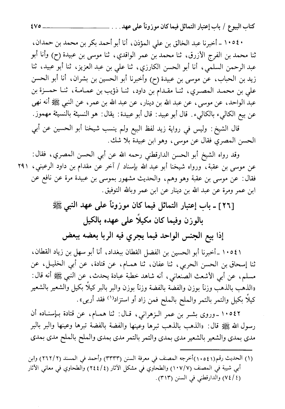 §بَابُ اعْتِبَارِ التَّمَاثُلِ فِيمَا كَانَ مَوْزُونًا عَلَى عَهْدِ النَّبِيِّ صَلَّى اللهُ عَلَيْهِ وَسَلَّمَ بِالْوَزْنِ وَفِيمَا كَانَ مَكِيلًا عَلَى عَهْدِهِ بِالْكَيْلِ إِذَا بِيعَ الْجِنْسُ الْوَاحِدُ فِيمَا يَجْرِي فِيهِ الرِّبَا بَعْضُهُ بِبَعْضٍ
