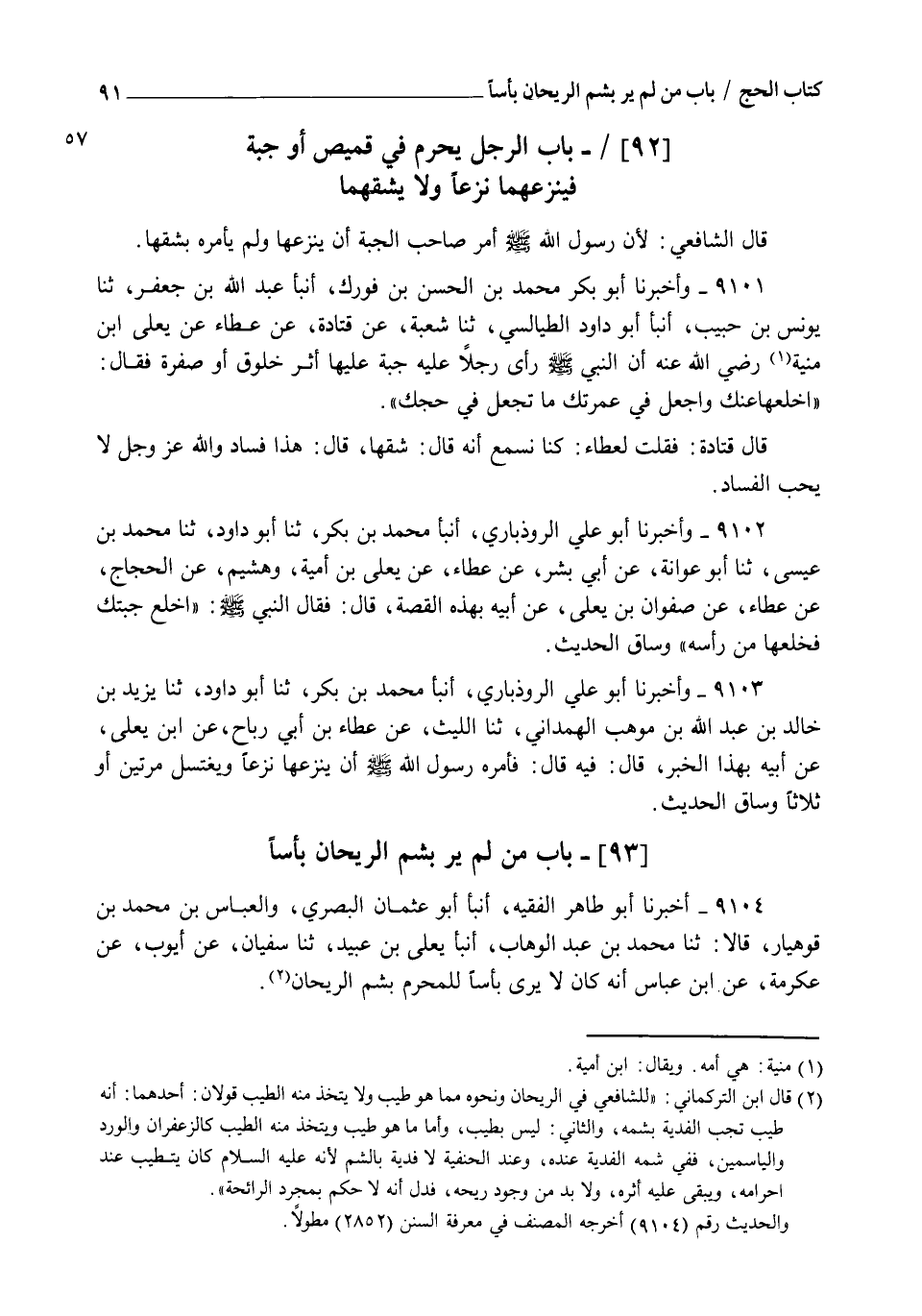 9102 - وَأَخْبَرَنَا أَبُو عَلِيٍّ الرُّوذْبَارِيُّ , أنبأ مُحَمَّدُ بْنُ بَكْرٍ , ثنا أَبُو دَاوُدَ , ثنا مُحَمَّدُ بْنُ عِيسَى , ثنا أَبُو عَوَانَةَ , عَنْ أَبِي بِشْرٍ , عَنْ عَطَاءٍ , عَنْ يَعْلَى بْنِ أُمَيَّةَ , وَهُشَيْمٌ , عَنِ الْحَجَّاجِ , عَنْ عَطَاءٍ , عَنْ صَفْوَانَ بْنِ يَعْلَى , عَنْ أَبِيهِ , بِهَذِهِ الْقِصَّةِ قَالَ: فَقَالَ النَّبِيُّ صَلَّى اللهُ عَلَيْهِ وَسَلَّمَ: " اخْلَعْ جُبَّتَكَ " فَخَلَعَهَا مِنْ رَأْسِهِ , وَسَاقَ الْحَدِيثَ