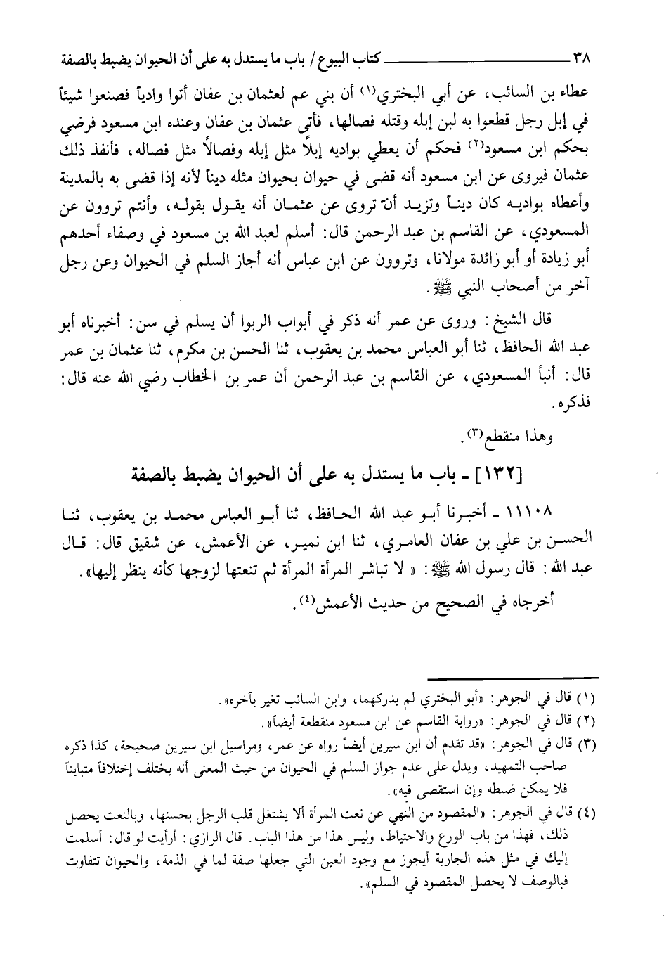 §بَابُ مَا يُسْتَدَلُّ بِهِ عَلَى أَنَّ الْحَيَوَانَ يُضْبَطُ بِالصِّفَةِ
