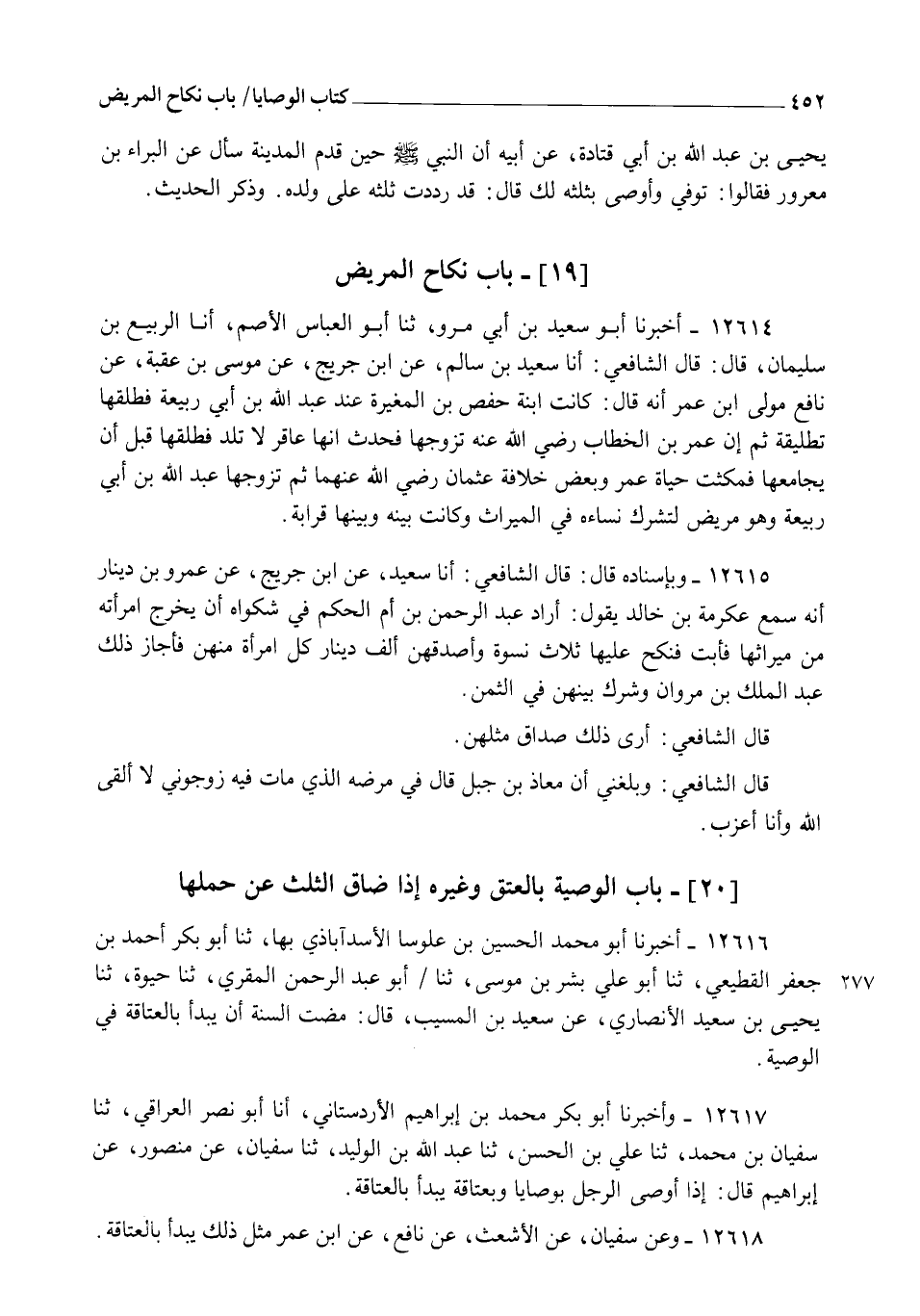 12616 - أَخْبَرَنَا أَبُو مُحَمَّدٍ الْحُسَيْنُ بْنُ عَلُوسَا الْأَسَدْآبَاذِيُّ بِهَا، ثنا أَبُو بَكْرٍ أَحْمَدُ بْنُ جَعْفَرٍ الْقَطِيعِيُّ، ثنا أَبُو عَلِيٍّ بِشْرُ بْنُ مُوسَى، ثنا أَبُو عَبْدِ الرَّحْمَنِ الْمُقْرِئُ , ثنا حَيْوَةُ , ثنا يَحْيَى بْنُ سَعِيدٍ الْأَنْصَارِيُّ , عَنْ سَعِيدِ بْنِ الْمُسَيِّبِ قَالَ: §" مَضَتِ السُّنَّةُ أَنْ يُبْدَأَ بِالْعَتَاقَةِ فِي الْوَصِيَّةِ "