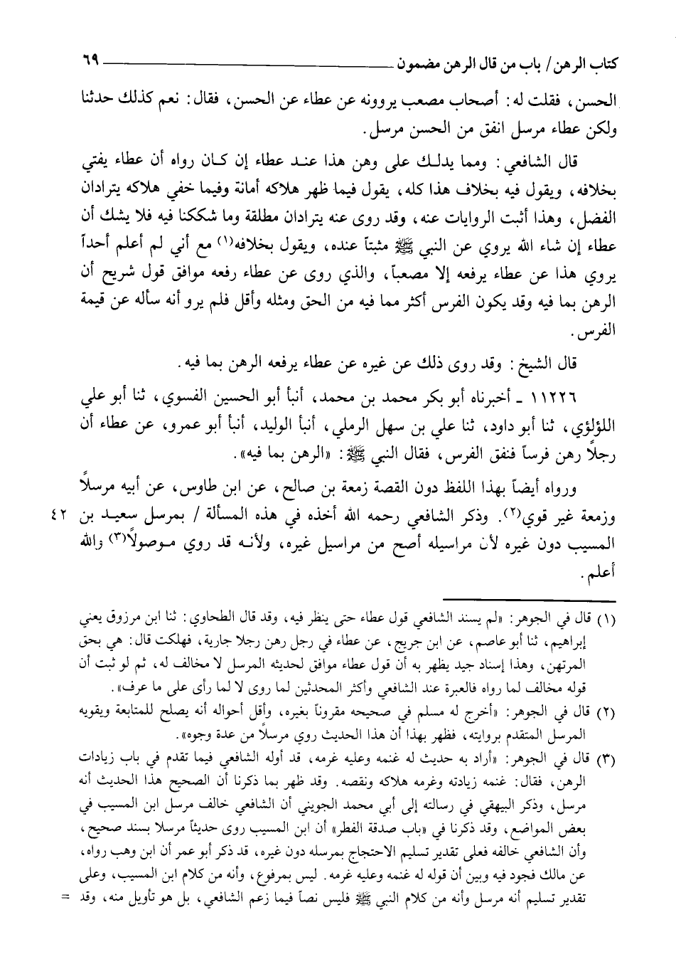 11226 - أَخْبَرَنَاهُ أَبُو بَكْرٍ مُحَمَّدُ بْنُ مُحَمَّدٍ , أنبأ أَبُو الْحُسَيْنِ الْفَسَوِيُّ، ثنا أَبُو عَلِيٍّ اللُّؤْلُؤِيُّ، ثنا أَبُو دَاوُدَ، ثنا عَلِيُّ بْنُ سَهْلٍ الرَّمْلِيُّ، أنبأ الْوَلِيدُ، أنبأ أَبُو عَمْرٍو، عَنْ عَطَاءٍ، أَنَّ رَجُلًا رَهَنَ فَرَسًا، فَنَفَقَ الْفَرَسُ، فَقَالَ النَّبِيُّ صَلَّى اللهُ عَلَيْهِ وَسَلَّمَ: §" الرَّهْنُ بِمَا فِيهِ " وَرَوَاهُ أَيْضًا بِهَذَا اللَّفْظِ دُونَ الْقِصَّةِ زَمْعَةُ بْنُ صَالِحٍ عَنِ ابْنِ طَاوُسٍ، عَنْ أَبِيهِ مُرْسَلًا , وَزَمْعَةُ غَيْرُ قَوِيٍّ وَذَكَرَ الشَّافِعِيُّ رَحِمَهُ اللهُ أَخْذَهُ فِي هَذِهِ الْمَسْأَلَةِ بِمُرْسَلِ سَعِيدِ بْنِ الْمُسَيِّبِ دُونَ غَيْرِهِ؛ لِأَنَّ مَرَاسِيلَهُ أَصَحُّ مِنْ مَرَاسِيلِ غَيْرِهِ؛ وَلَأَنَّهُ قَدْ رُوِيَ مَوْصُولًا، وَاللهُ أَعْلَمُ