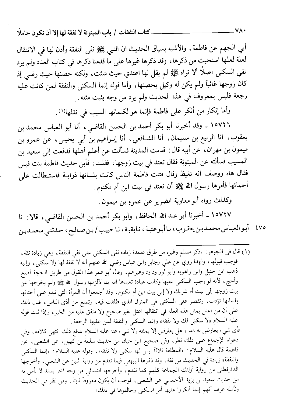15727 - أَخْبَرَنَا أَبُو عَبْدِ اللهِ الْحَافِظُ، وَأَبُو بَكْرٍ أَحْمَدُ بْنُ الْحَسَنِ الْقَاضِي قَالَا: نا أَبُو الْعَبَّاسِ مُحَمَّدُ بْنُ يَعْقُوبَ، نا أَبُو عُتْبَةَ، نا بَقِيَّةُ، نا حَبِيبُ بْنُ صَالِحٍ، حَدَّثَنِي مُحَمَّدُ بْنُ -[780]- عَبَّادٍ الْمَكِّيُّ قَالَ: كُنْتُ جَالِسًا عِنْدَ ابْنِ عَبَّاسٍ رَضِيَ اللهُ عَنْهُمَا إِذْ سَأَلَهُ رَجُلٌ §هَلْ لِلْمُطَلَّقَةِ ثَلَاثًا نَفَقَةٌ؟ فَقُلْتُ: " لَيْسَ لَهَا نَفَقَةٌ " فَقَالَ ابْنُ عَبَّاسٍ: " أَصَبْتَ يَا ابْنَ أَخِي أَنَا مَعَكَ "