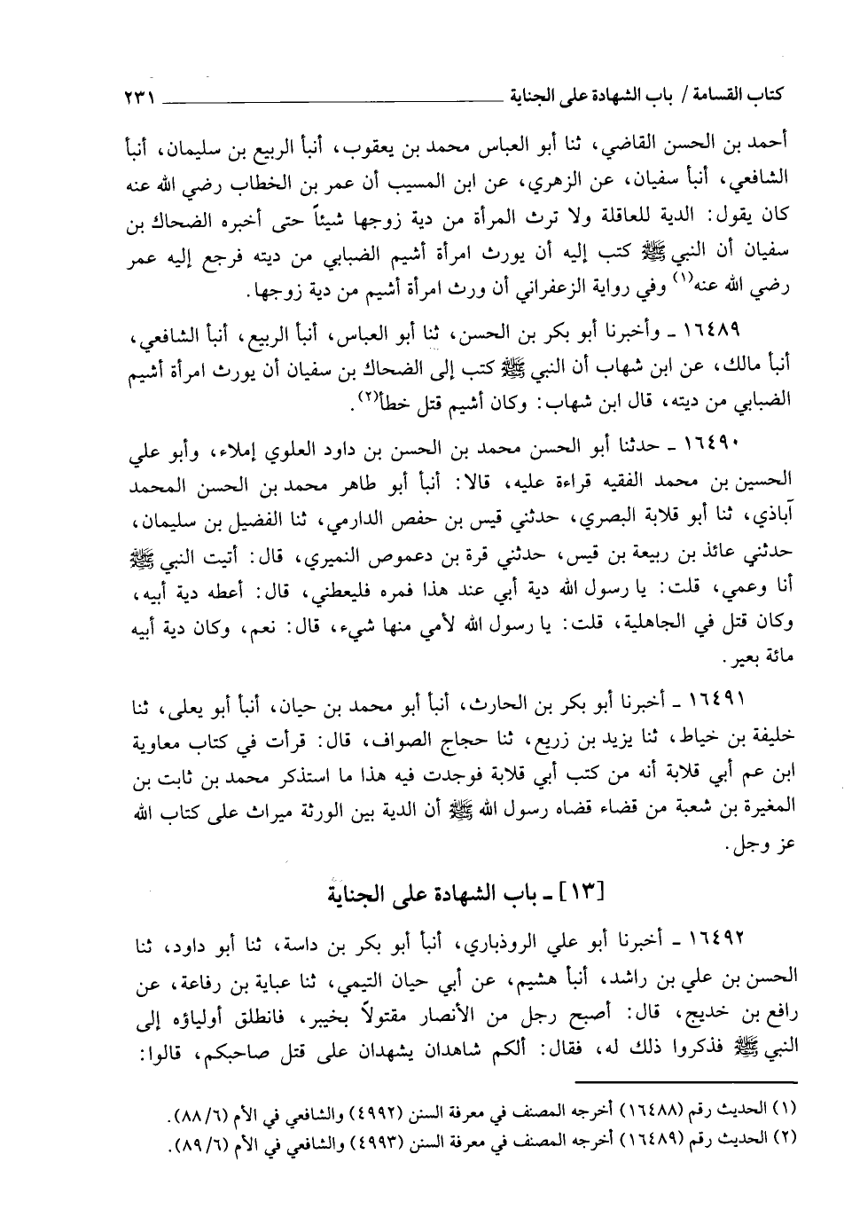 16489 - وَأَخْبَرَنَا أَبُو بَكْرِ بْنُ الْحَسَنِ، ثنا أَبُو الْعَبَّاسِ، أنبأ الرَّبِيعُ، أنبأ الشَّافِعِيُّ، أنبأ مَالِكٌ، عَنِ ابْنِ شِهَابٍ، أَنَّ النَّبِيَّ صَلَّى اللهُ عَلَيْهِ وَسَلَّمَ: §كَتَبَ إِلَى الضَّحَّاكِ بْنِ سُفْيَانَ أَنْ يُوَرِّثَ امْرَأَةَ أَشْيَمَ الضِّبَابِيِّ مِنْ دِيَتِهِ قَالَ ابْنُ شِهَابٍ: وَكَانَ أَشْيَمُ قُتِلَ خَطَأً