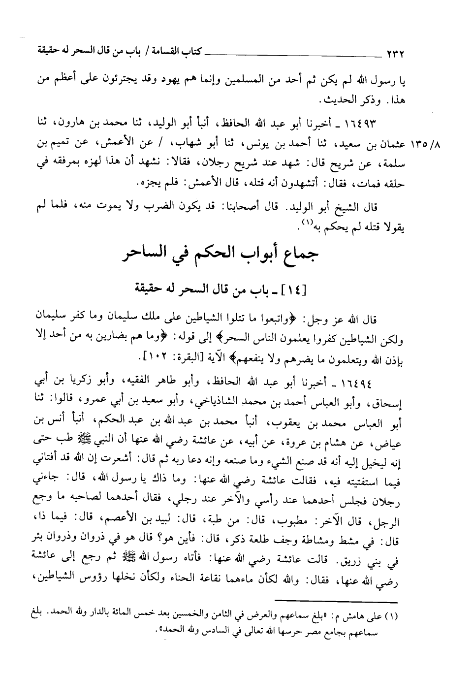 §جِمَاعُ أَبْوَابِ الْحُكْمِ فِي السَّاحِرِ