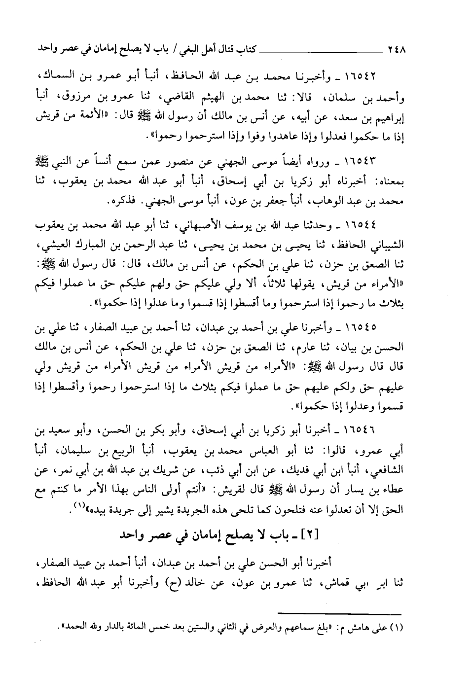 §بَابُ لَا يَصْلُحُ إِمَامَانِ فِي عَصْرٍ وَاحِدٍ