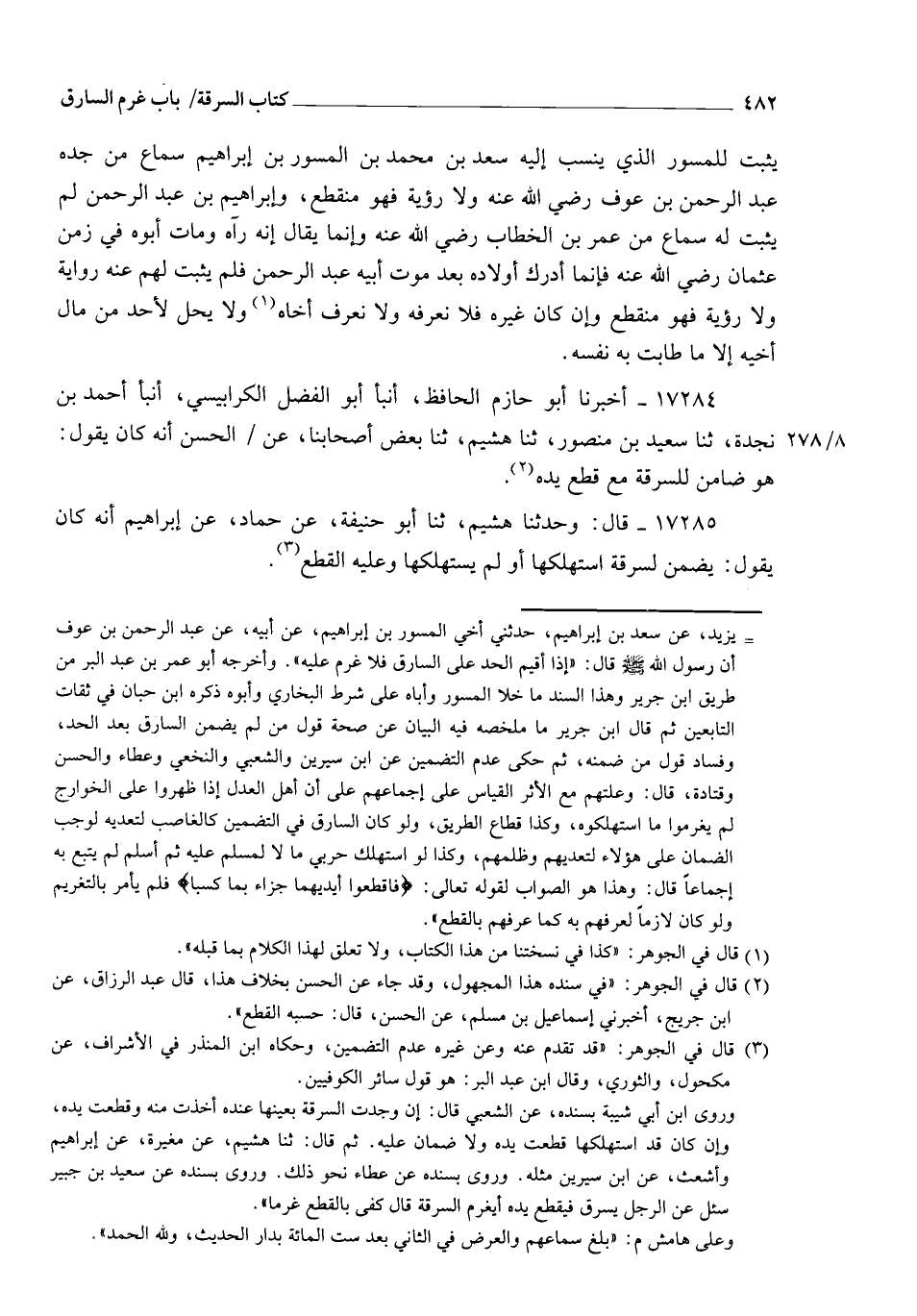17284 - أَخْبَرَنَا أَبُو حَازِمٍ الْحَافِظُ، أنبأ أَبُو الْفَضْلِ الْكَرَابِيسِيُّ، أنبأ أَحْمَدُ بْنُ نَجْدَةَ، ثنا سَعِيدُ بْنُ مَنْصُورٍ، ثنا هُشَيْمٌ، ثنا بَعْضُ أَصْحَابِنَا، عَنِ الْحَسَنِ، أَنَّهُ كَانَ يَقُولُ: §" هُوَ ضَامِنٌ لِلسَّرِقَةِ مَعَ قَطْعِ يَدِهِ "