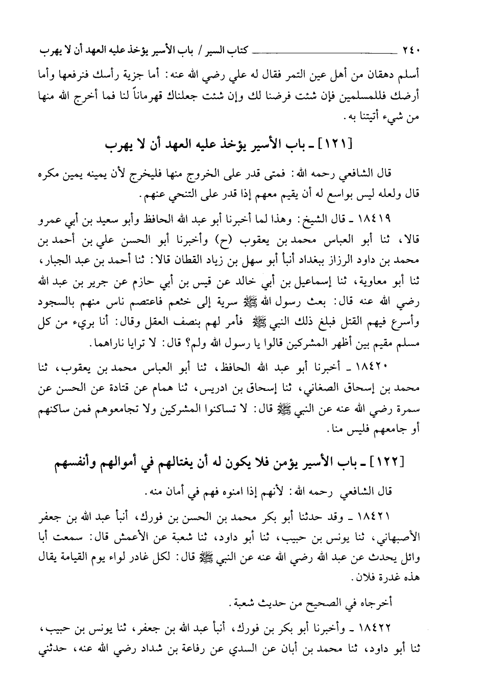 §بَابُ الْأَسِيرِ يُؤْخَذُ عَلَيْهِ الْعَهْدُ أَنْ لَا يَهْرُبَ