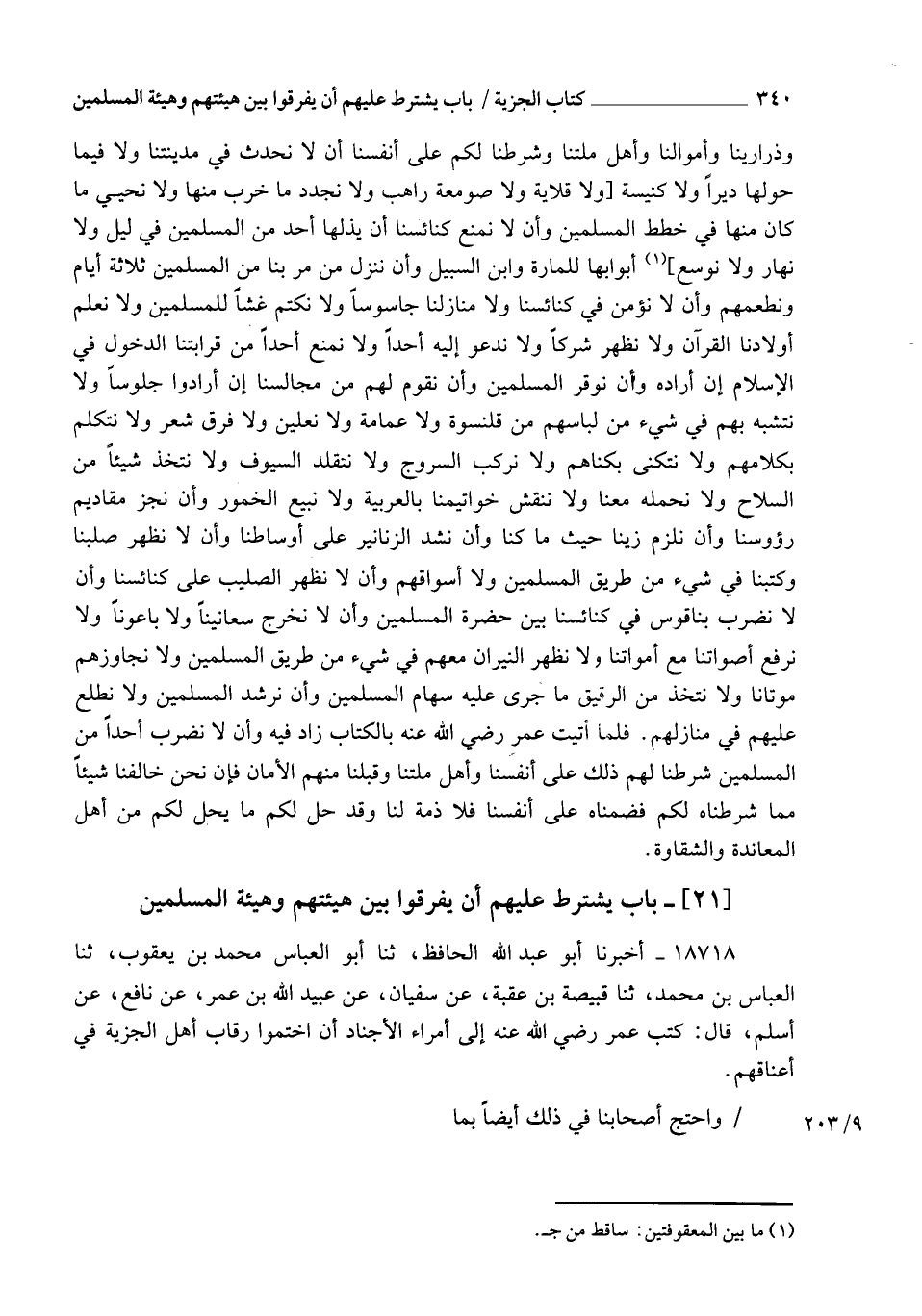 §بَابُ يَشْتَرِطُ عَلَيْهِمْ أَنْ يُفَرِّقُوا بَيْنَ هَيْئَتِهِمْ وَهَيْئَةِ الْمُسْلِمِينَ