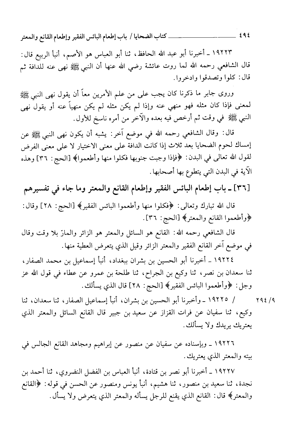 قَالَ اللهُ تَبَارَكَ وَتَعَالَى: {فَكُلُوا مِنْهَا وَأَطْعِمُوا الْبَائِسَ الْفَقِيرَ} [الحج: 28]، وَقَالَ: {وَأَطْعِمُوا الْقَانِعَ وَالْمُعْتَرَّ} [الحج: 36].