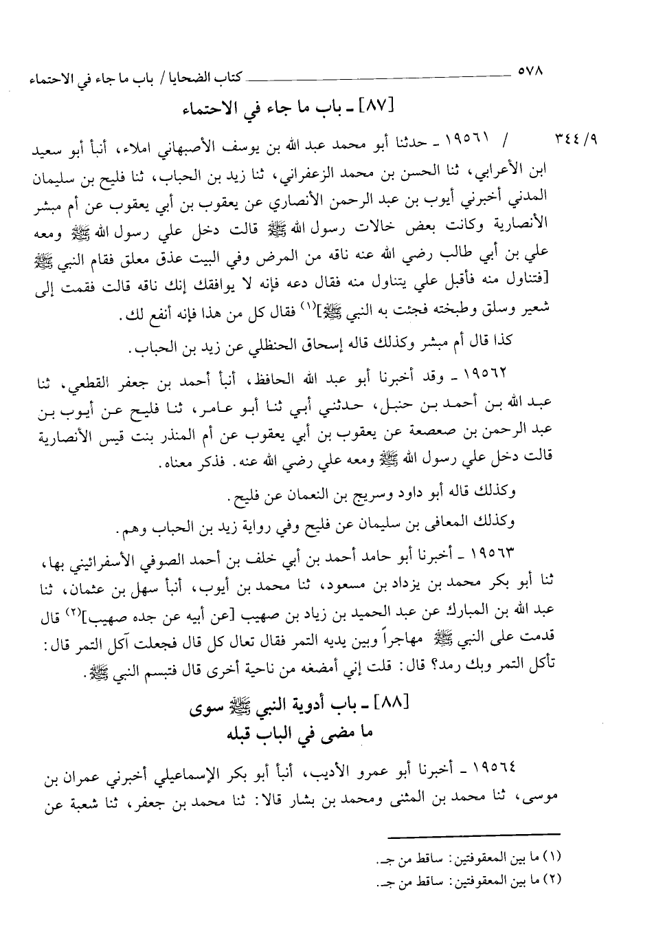 19562 - وَقَدْ أَخْبَرَنَا أَبُو عَبْدِ اللهِ الْحَافِظَ، أنبأ أَحْمَدُ بْنُ جَعْفَرٍ الْقُطِيعِيُّ، ثنا عَبْدُ اللهِ بْنُ أَحْمَدَ بْنِ حَنْبَلٍ، حَدَّثَنِي أَبِي، ثنا أَبُو عَامِرٍ، ثنا فُلَيْحٌ، عَنْ أَيُّوبَ بْنِ عَبْدِ الرَّحْمَنِ بْنِ صَعْصَعَةَ، عَنْ يَعْقُوبَ بْنِ أَبِي يَعْقُوبَ، عَنْ أُمِّ الْمُنْذِرِ بِنْتِ قَيْسٍ الْأَنْصَارِيَّةِ، قَالَتْ: دَخَلَ عَلَيَّ رَسُولُ اللهِ صَلَّى اللهُ عَلَيْهِ وَسَلَّمَ وَمَعَهُ عَلِيٌّ رَضِيَ اللهُ عَنْهُ , فَذَكَرَ مَعْنَاهُ. وَكَذَلِكَ قَالَهُ أَبُو دَاوُدَ وَسُرَيْجُ بْنُ النُّعْمَانِ عَنْ فُلَيْحٍ , وَكَذَلِكَ الْمُعَافَى بْنُ سُلَيْمَانَ عَنْ فُلَيْحٍ , وَفِي رِوَايَةِ زَيْدِ بْنِ الْحُبَابِ وَهْمٌ