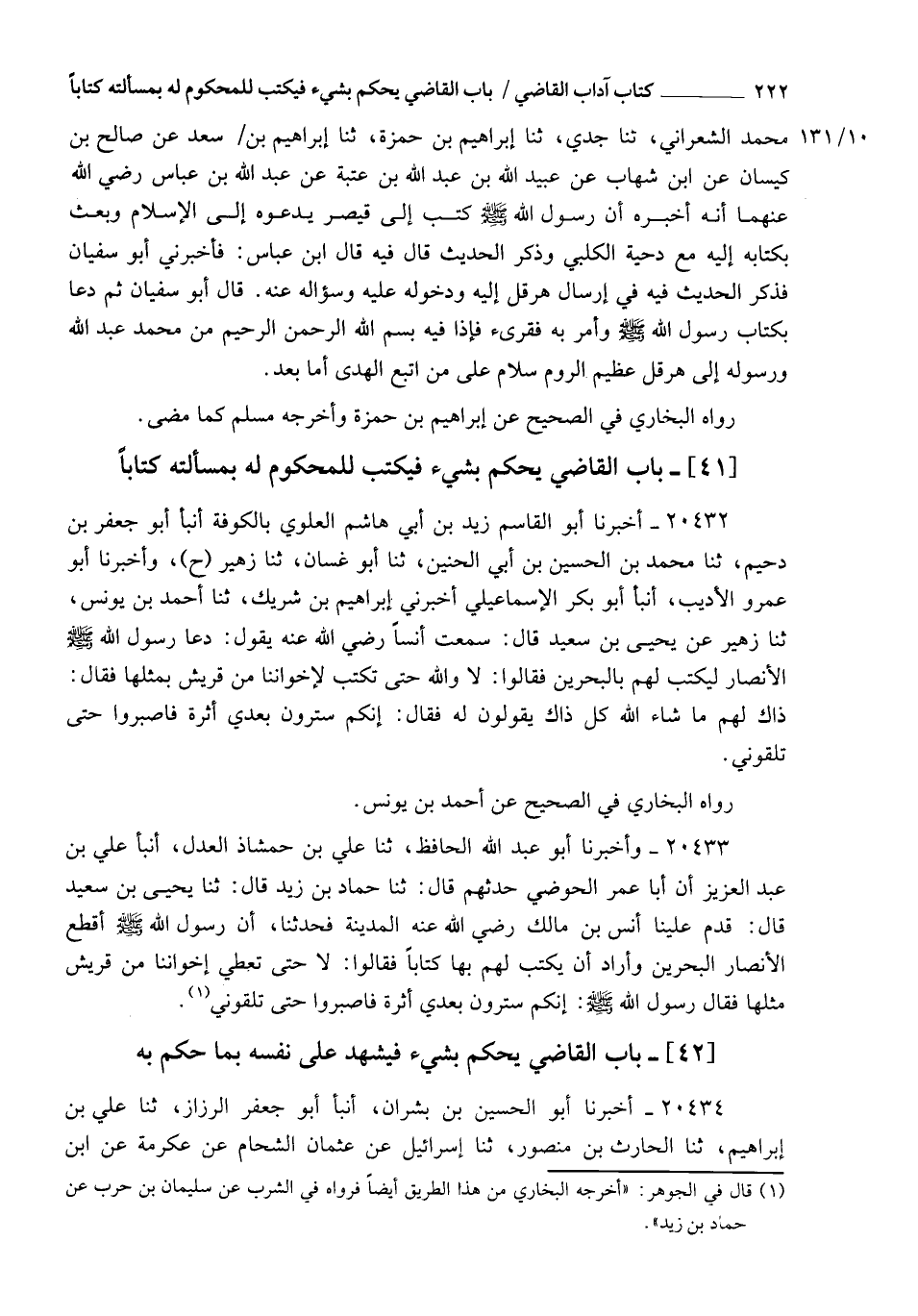 §بَابُ الْقَاضِي يَحْكُمُ بِشَيْءٍ , فَيَشْهَدُ عَلَى نَفْسِهِ بِمَا حَكَمَ بِهِ