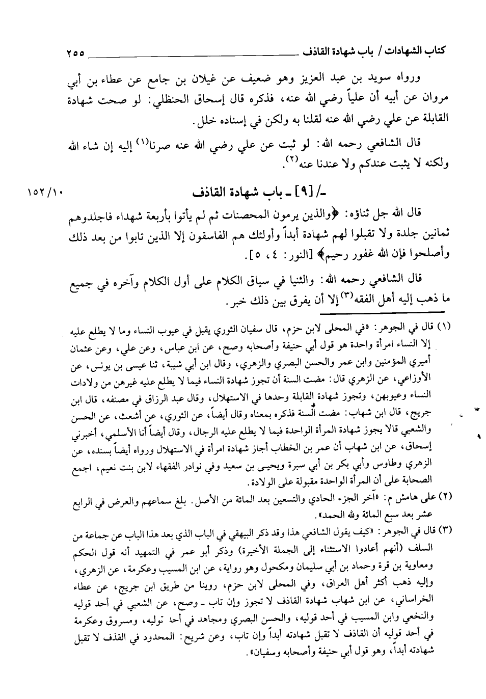 قَالَ اللهُ جَلَّ ثَنَاؤُهُ: {وَالَّذِينَ يَرْمُونَ الْمُحْصَنَاتِ ثُمَّ لَمْ يَأْتُوا بِأَرْبَعَةِ شُهَدَاءَ فَاجْلِدُوهُمْ ثَمَانِينَ جَلْدَةً وَلَا تَقْبَلُوا لَهُمْ شَهَادَةً أَبَدًا وَأُولَئِكَ هُمُ الْفَاسِقُونَ} [النور: 4] {إِلَّا الَّذِينَ تَابُوا مِنْ بَعْدِ ذَلِكَ وَأَصْلَحُوا فَإِنَّ اللهَ غَفُورٌ رَحِيمٌ} [آل عمران: 89] قَالَ الشَّافِعِيُّ رَحِمَهُ اللهُ: وَالثُّنْيَا فِي سِيَاقِ الْكَلَامِ عَلَى أَوَّلِ الْكَلَامِ وَآخِرِهِ فِي جَمِيعِ مَا ذَهَبَ إِلَيْهِ أَهْلُ الْفِقْهِ , إِلَّا أَنْ يُفَرِّقَ بَيْنَ ذَلِكَ خَبَرٌ , -[256]- قَالَ الشَّافِعِيُّ رَحِمَهُ اللهُ: " وَإِنَّ فِيهِ لَحَدِيثًا ".