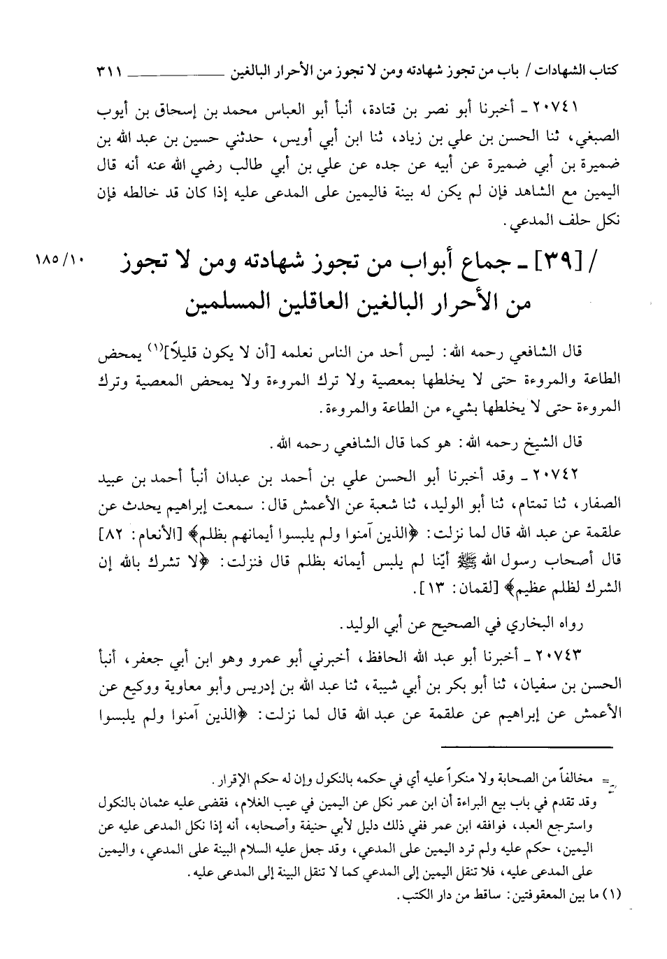 §جُمَّاعُ أَبْوَابِ مَنْ تَجُوزُ شَهَادَتُهُ , وَمَنْ لَا تَجُوزُ مِنَ الْأَحْرَارِ الْبَالِغِينَ الْعَاقِلِينَ الْمُسْلِمِينَ