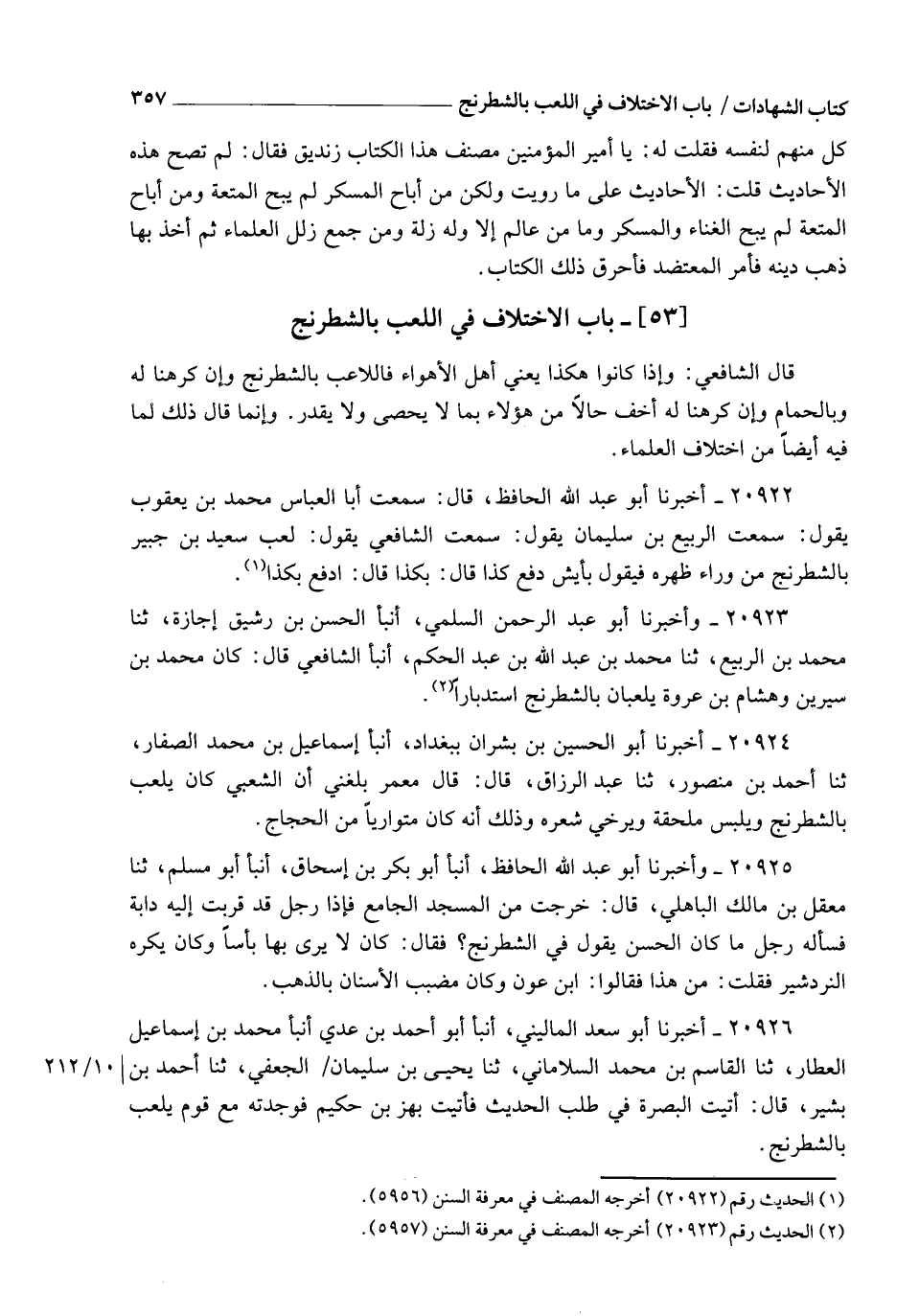 20923 - وَأَخْبَرَنَا أَبُو عَبْدِ الرَّحْمَنِ السُّلَمِيُّ , أنبأ الْحَسَنُ بْنُ رَشِيقٍ , إِجَازَةً , ثنا مُحَمَّدُ بْنُ الرَّبِيعِ , ثنا مُحَمَّدُ بْنُ عَبْدِ اللهِ بْنِ عَبْدِ الْحَكَمِ , أنبأ الشَّافِعِيُّ , قَالَ: §" كَانَ مُحَمَّدُ بْنُ سِيرِينَ , وَهِشَامُ بْنُ عُرْوَةَ يَلْعَبَانِ بِالشِّطْرَنْجِ اسْتِدْبَارًا "