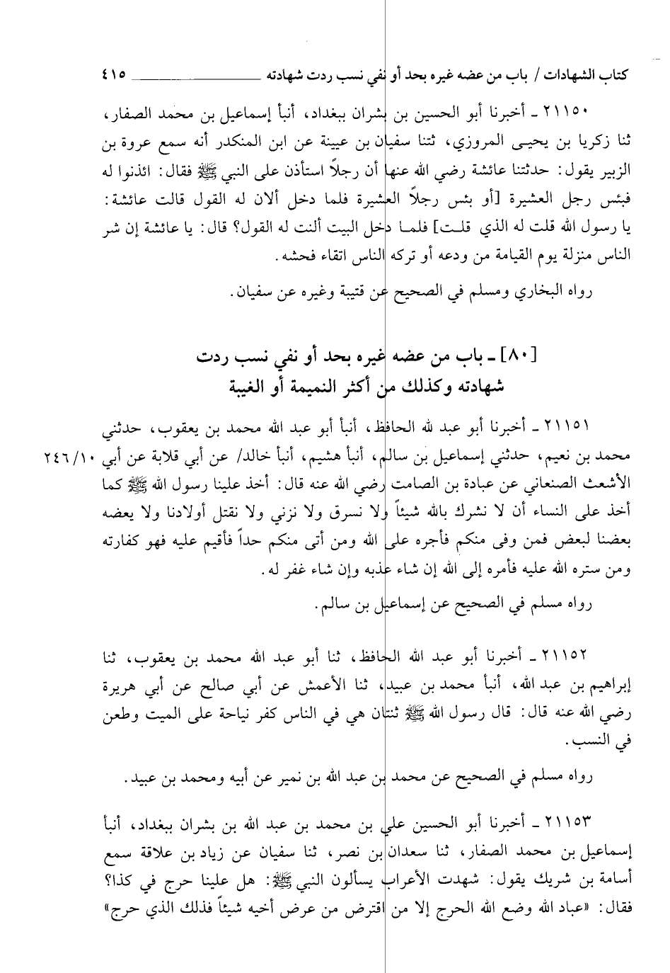 §بَابُ: مَنْ عَضَهَ غَيْرَهُ بِحَدٍّ أَوْ نَفْيِ نَسَبٍ رُدَّتْ شَهَادَتُهُ , وَكَذَلِكَ مَنْ أَكْثَرَ النَّمِيمَةَ أَوِ الْغِيبَةَ