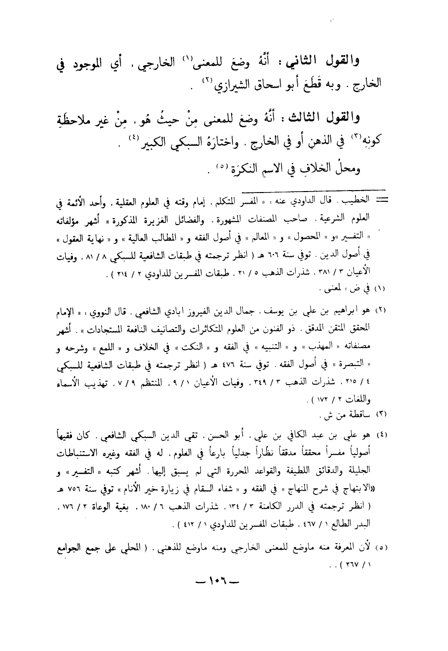 5 لأن المعرفة منه ما وضع للمعنى الخارجي ومنه ما وضع للذهني. "المحلي على جمع الجوامع 1/ 267".