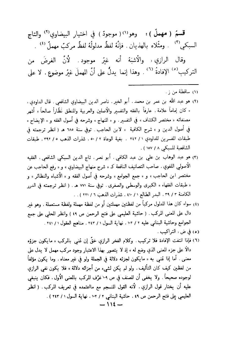 وَقَالَ الرَّازِيّ: وَالأَشْبَهُ أَنَّهُ غَيْرُ مَوْجُودٍ، لأَنَّ الْغَرَضَ مِنْ التَّرْكِيبِ5 الإِفَادَةُ6. وَهَذَا إنَّمَا يَدُلُّ عَلَى أَنَّ الْمُهْمَلَ غَيْرُ مَوْضُوعٍ، لا عَلَى