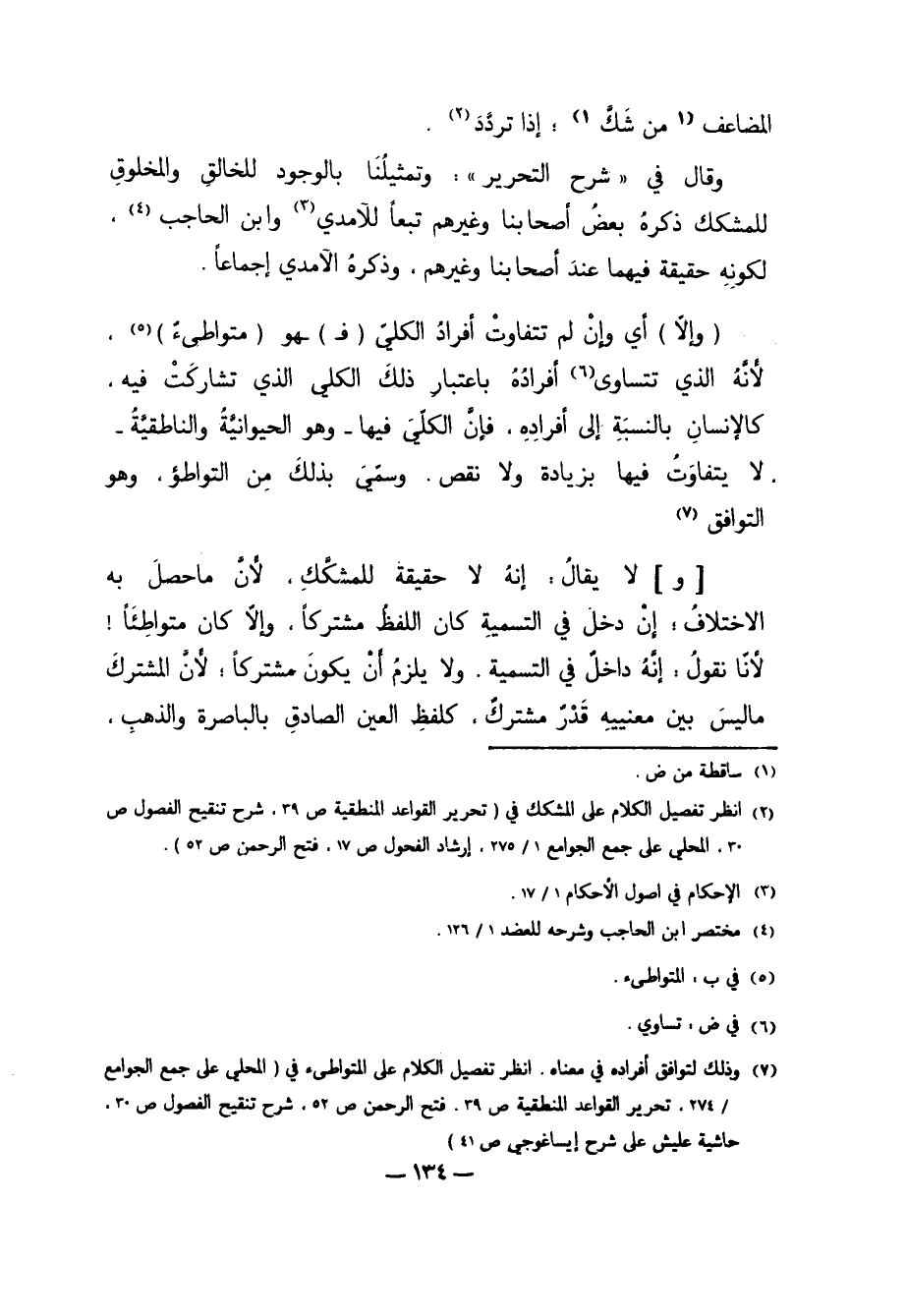 2 انظر تفصيل الكلام على المشكك في "تحرير القواعد المنطقية ص39، شرح تنقيح الفصول ص30، المحلي على جمع الجوامع 1/ 275، إرشاد الفحول ص17، فتح الرحمن ص52".