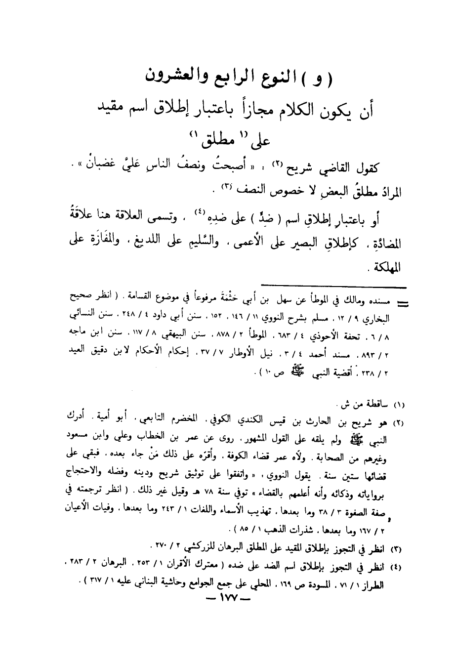 4 انظر في التجوز بإطلاق اسم الضد على ضده "معترك الأقران 1/ 253، البرهان 2/ 283، الطراز 1/ 71، المسودة ص169، المحلي على جمع الجوامع وحاشية البناني عليه 1/ 317".