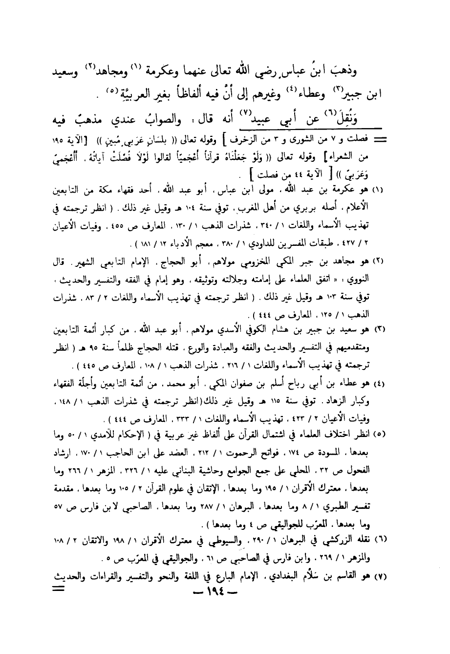 6 نقله الزركشي في البرهان 1/ 290، والسيوطي في معترك الأقران 1/ 198 والاتقان 2/ 108 والمزهر 1/ 269، وابن فارس في الصاحبي ص61، والجواليقي في المعرّب ص5.