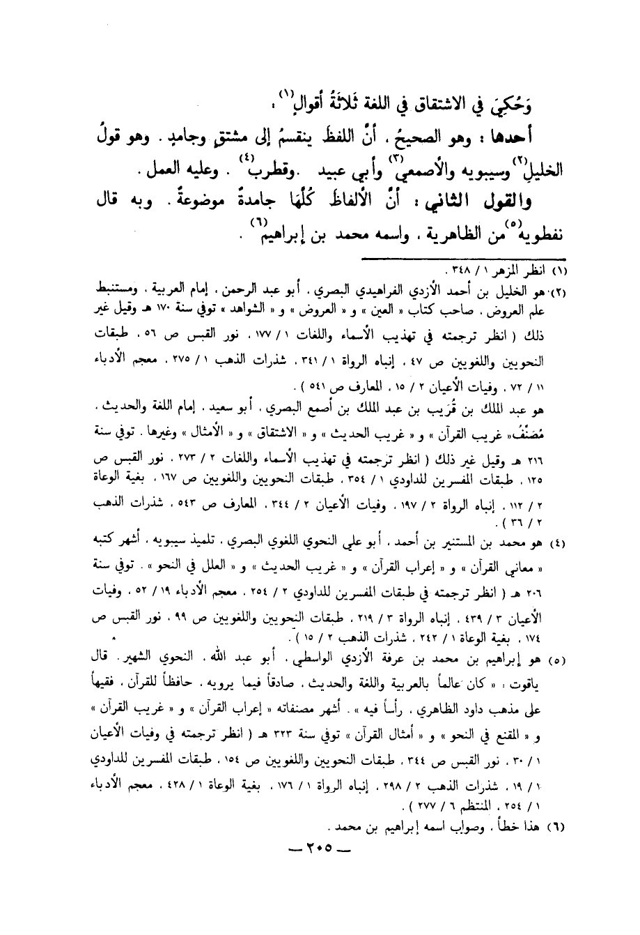 وَالْقَوْلُ الثَّانِي: أَنَّ الأَلْفَاظَ كُلَّهَا جَامِدَةٌ مَوْضُوعَةٌ، وَبِهِ قَالَ نِفْطَوَيْهِ5 مِنْ الظَّاهِرِيَّةِ. وَاسْمُهُ مُحَمَّدُ بْنُ إبْرَاهِيمَ6.