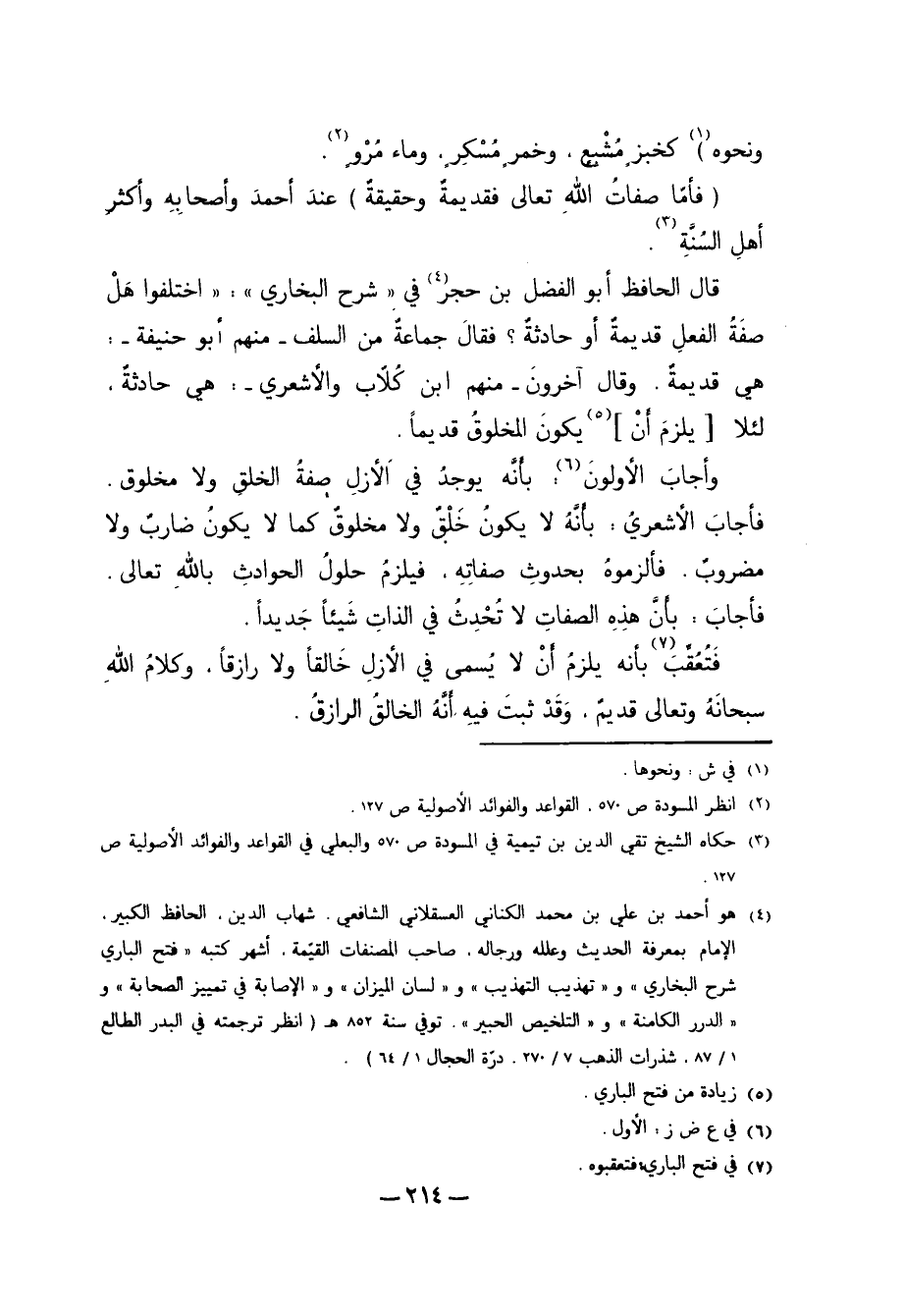 قَالَ الْحَافِظُ أَبُو الْفَضْلِ بْنُ حَجَرٍ4 فِي "شَرْحِ الْبُخَارِيِّ": "اخْتَلَفُوا هَلْ صِفَةُ الْفِعْلِ قَدِيمَةٌ أَوْ حَادِثَةٌ؟ فَقَالَ جَمَاعَةٌ مِنْ السَّلَفِ، - مِنْهُمْ أَبُو حَنِيفَةَ-: هِيَ قَدِيمَةٌ. وَقَالَ آخَرُونَ، - مِنْهُمْ ابْنُ كُلاَّبٍ وَالأَشْعَرِيُّ-: هِيَ حَادِثَةٌ، لِئَلاَّ [يَلْزَمَ أَنْ] 5 يَكُونَ الْمَخْلُوقُ قَدِيمًا.