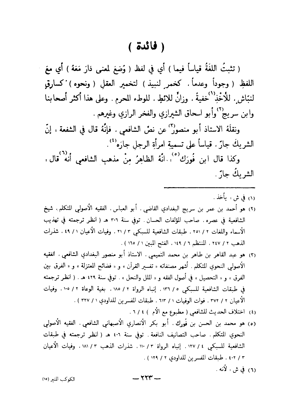 2 هو أحمد بن عمر بن سريج البغدادي القاضي، أبو العباس، الفقيه الأصولي المتكلم، شيخ الشافعية في عصره، صاحب المؤلفات الحسان. توفي سنة 306هـ. "انظر ترجمته في تهذيب الأسماء واللغات 2/ 251، طبقات الشافعية للسبكي 3/ 21، وفيات الأعيان 1/ 49، شذرات الذهب 2/ 247، المنتظم 6/ 149، الفتح المبين 1/ 165".