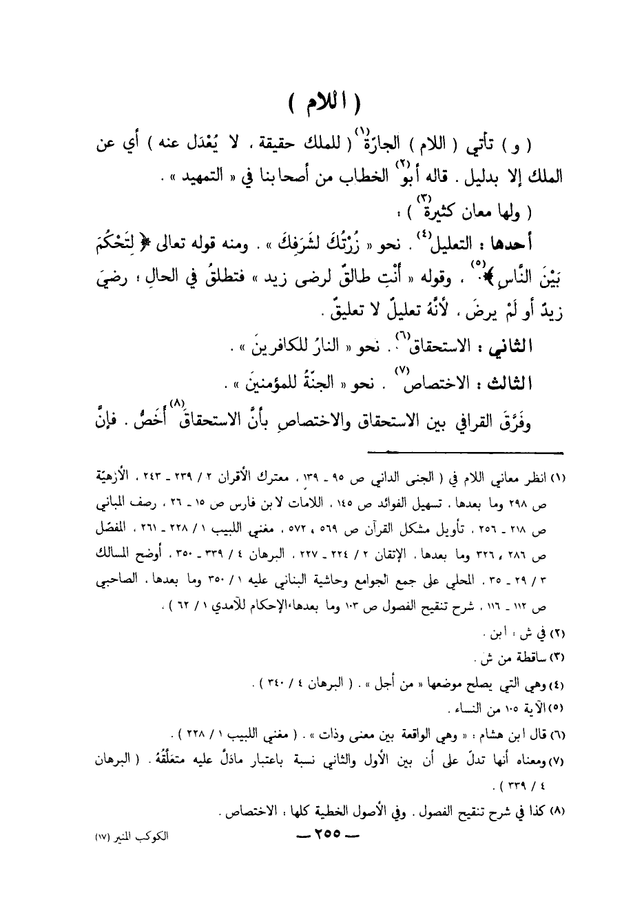 1 انظر معاني اللام في "الجنى الداني ص95-139، معترك الأقران 2/ 239-243، الأزهيّة ص298 وما بعدها، تسهيل الفوائد ص145، اللامات لابن فارس ص15-26، رصف المباني ص218-256، تأويل مشكل القرآن ص569-572، مغني اللبيب 1/ 228-261، المفصّل ص286-326 وما بعدها، الإتقان 2/ 224-227، البرهان 4/339-350، أوضح المسالك 3/ 29-35، المحلي على جمع الجوامع وحاشية البناني عليه 1/ 350 وما بعدها، الصاحبي ص112-116، شرح تنقيح الفصول ص103 وما بعدها، الإحكام للآمدي 1/62".