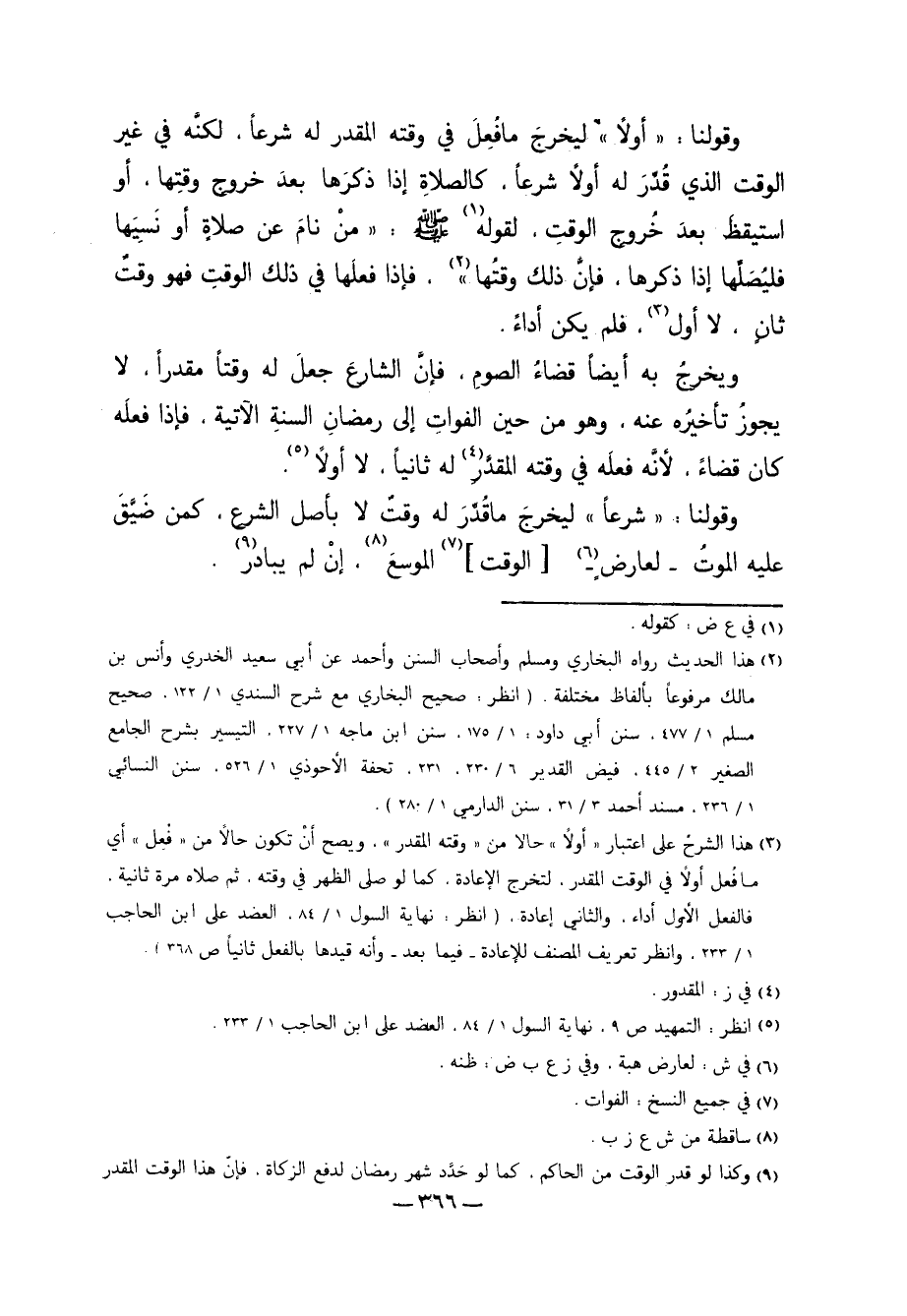 9 وكذا لو قدر الوقت من الحاكم، كما لو حَدَّد شهر رمضان لدفع الزكاة، فإنّ هذا الوقت المقدر ليس من قبل الشارع، ويسمى فعلُ المكلف أداء، سواء دفع الزكاة في الوقت أم خارجه.