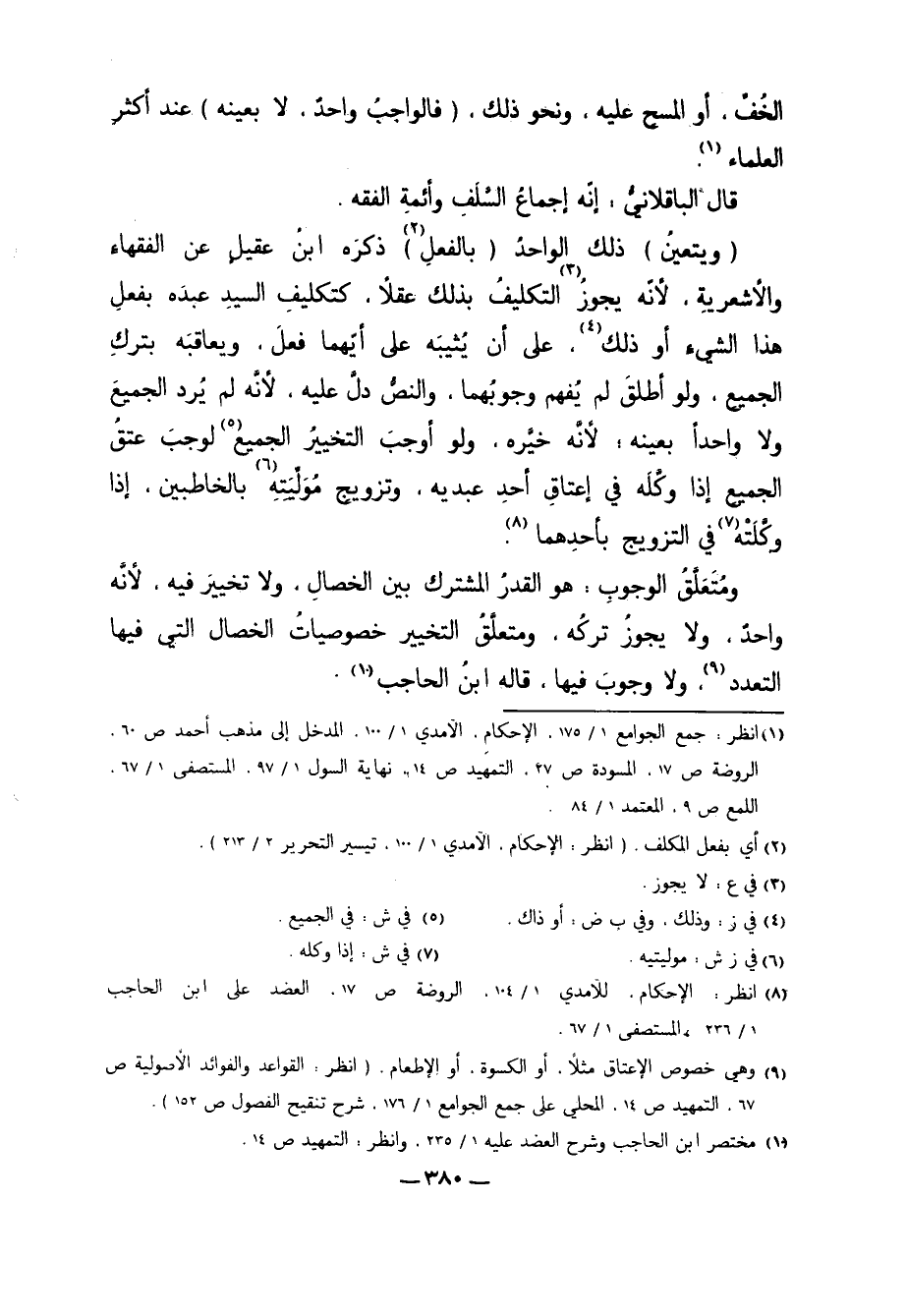 الْخُفِّ أَوْ الْمَسْحِ عَلَيْهِ، وَنَحْوِ ذَلِكَ،"فَالْوَاجِبُ وَاحِدٌ لا بِعَيْنِهِ" عِنْدَ أَكْثَرِ الْعُلَمَاءِ1.
