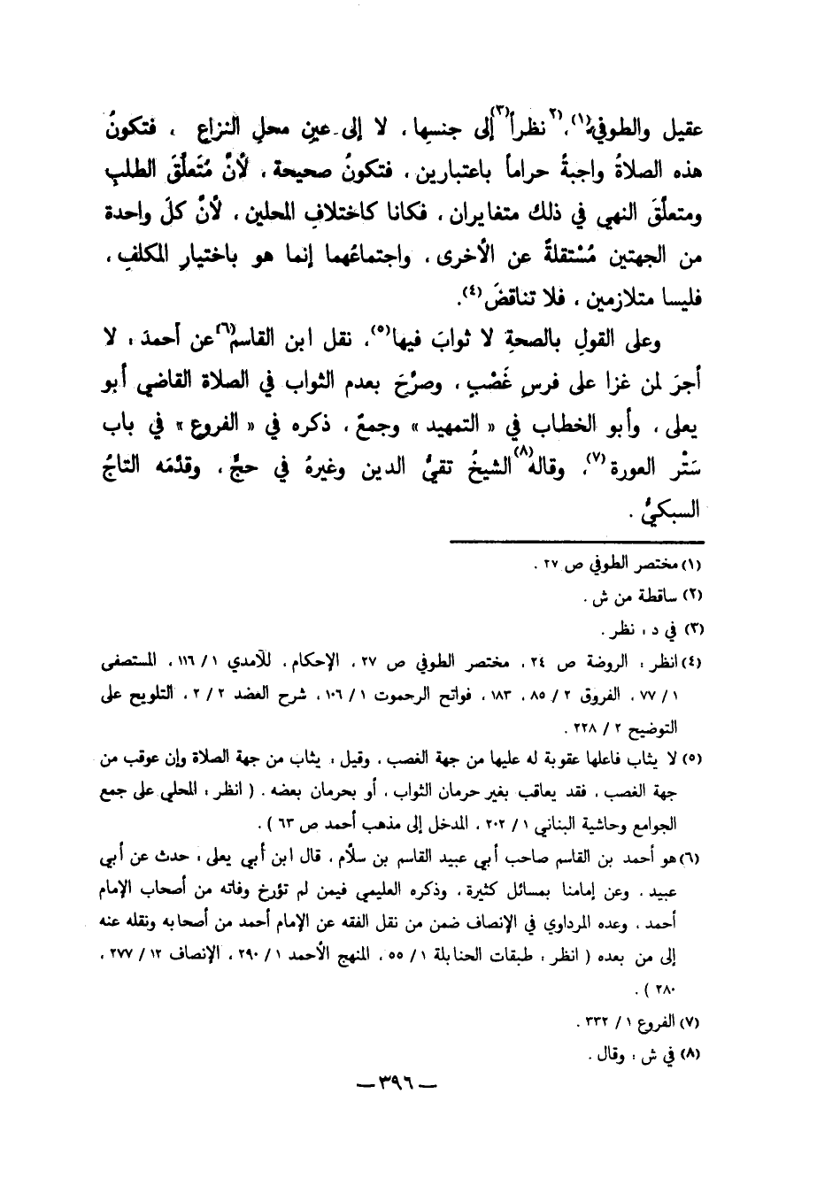 5 لا يثاب فاعلها عقوبة له عليها من جهة الغصب، وقيل من جهة الخلاة وإن عوقب من جهة الغصب، فقد يعاقب بغير حرمان الثواب، أو بحرمان بعضه، "انظر: المحلي علي جمع الجوامع وحاشية البناني 1/ 202، المدخل إلى مذهب أحمد ص63".