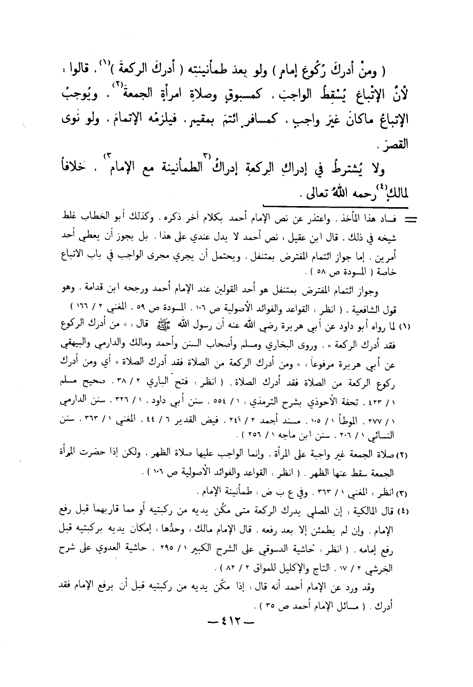 3 انظر: المغني 1/ 363، وفي ع ب ض: طمأنينة الإمام.