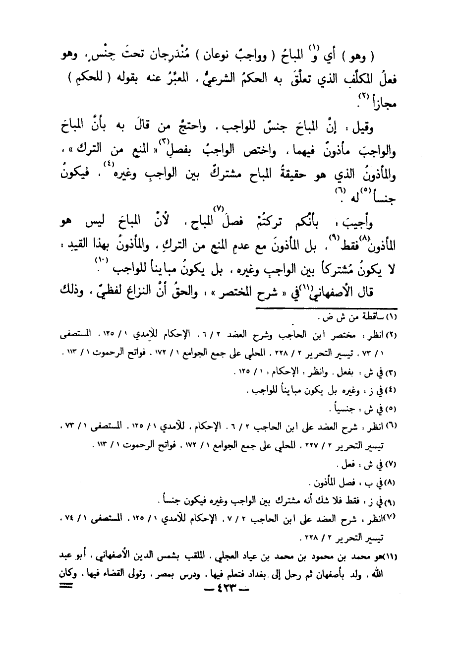 10 انظر: شرح العضد على ابن الحاجب 2/ 7، الإحكام للآمدي 1/ 125، المستصفى 1/ 74، تيسير التحرير 2/ 228.